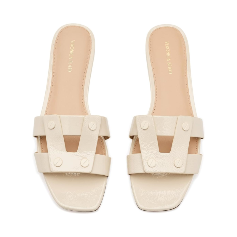 - The Veronica Beard Via Slide Slide Sandals are the warm-weather hero. Expertly crafted in leather, this open square toe sandal features a minimalist multi-strap design accented with tonal hardware. A true wear-with-everything style, it transitions seamlessly from day to night. Crafted from leather lining, and cushioned foam insole, this pair of sandals features slip-on style, low-stacked heels, and brand detailing on the footbed.