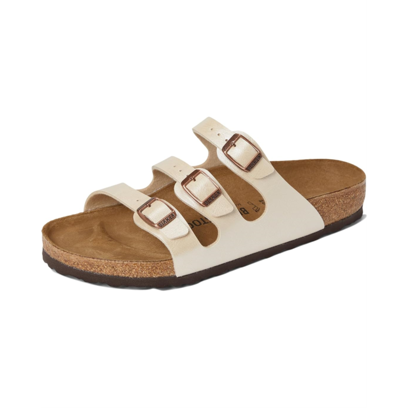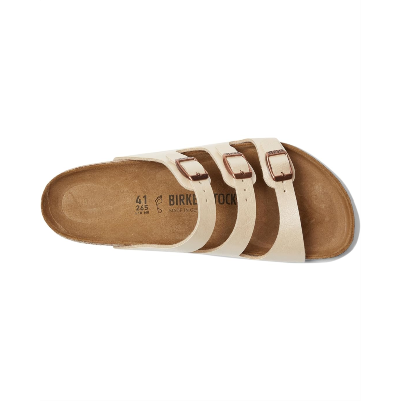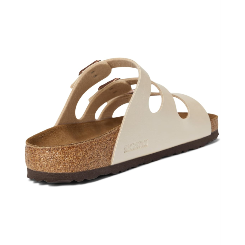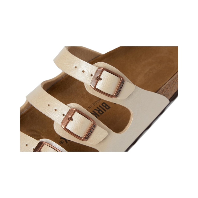 - Birkenstock has given the classic Florida model a new lease on life. Thanks to the three slender straps that can be adjusted, these sandals offer a customizable fit. The upper is made of skin-friendly, hard-wearing Birko-Flor material for added durability. These slip-on sandals are made of a soft polyester lining and a contoured cork-latex footbed that creates custom support with wear.