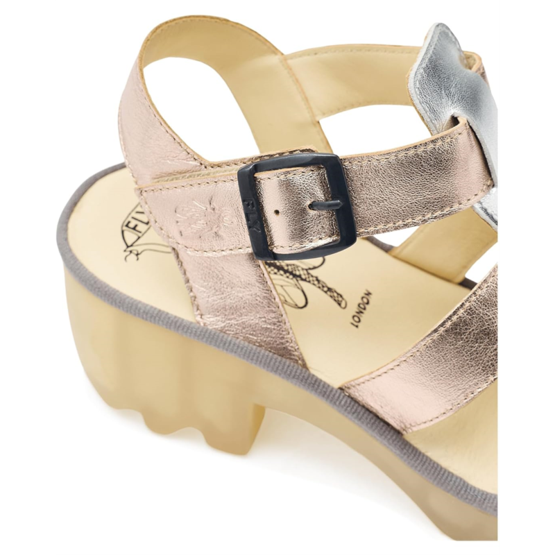 - The FLY LONDON Terf614fly sandals have lots of cushioning in the heel-to-toe foam insole and a flexible rubber outsole with a rounded toe shape. Their buckle strap makes it easy to get on and off, while the rich leather upper and lining surround your feet in comfort. These heeled sandals are a great choice to amp up your outfits and looks.