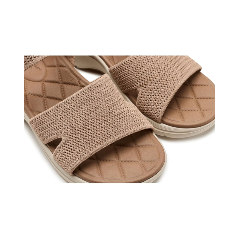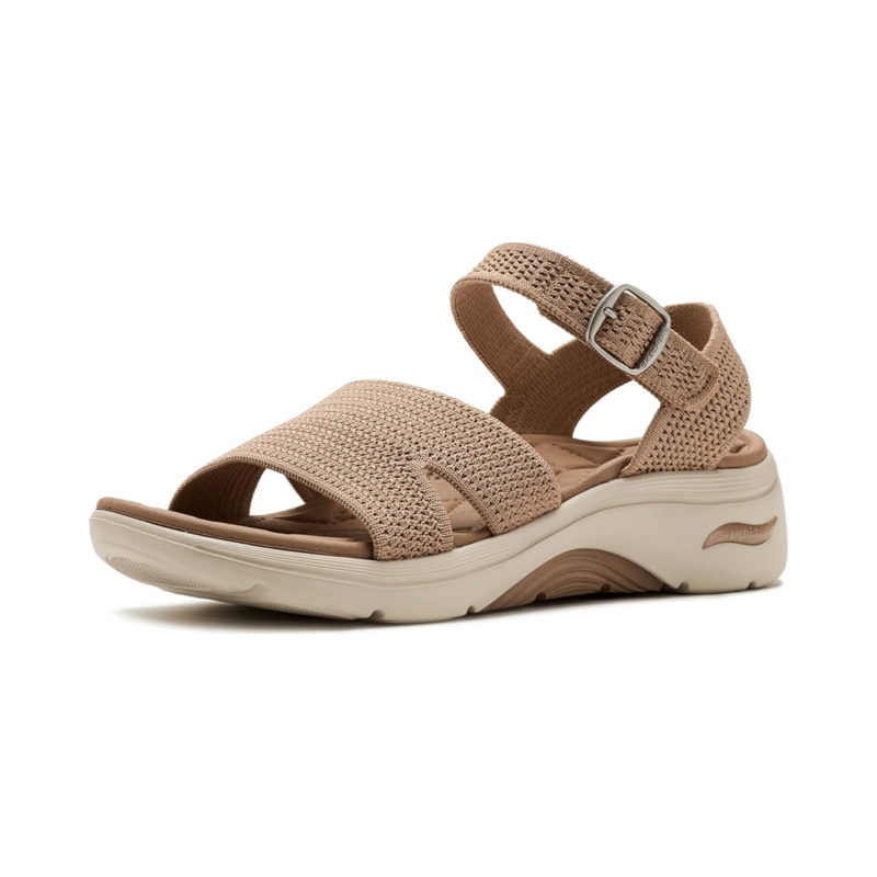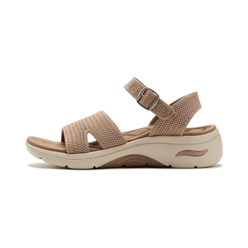 - Find comfort and support wearing the SKECHERS Performance On-The-Go GO Walk Arch Fit 2.0 Sandals w/ Shiny Yarn. This Arch Fit sandal has been granted the APMA Seal of Acceptance and features an upper with shiny yarn detail, buckle adjustable ankle strap, quilted Goga Mat footbed, ULTRA GO cushioning, and Comfort Pillar Technology for added support.