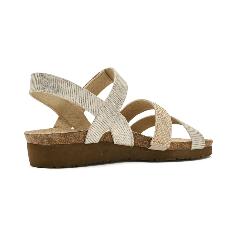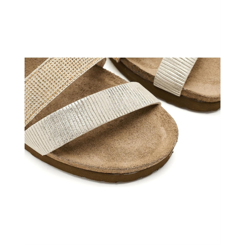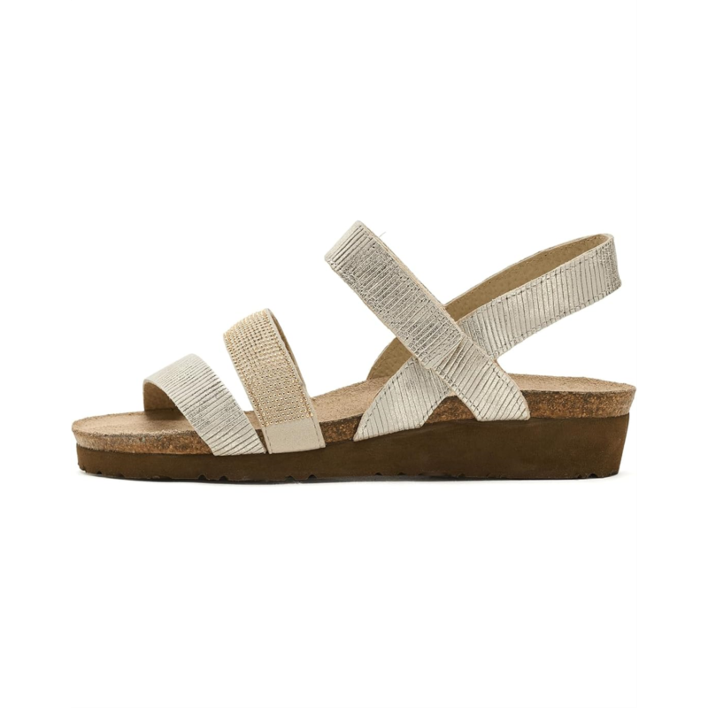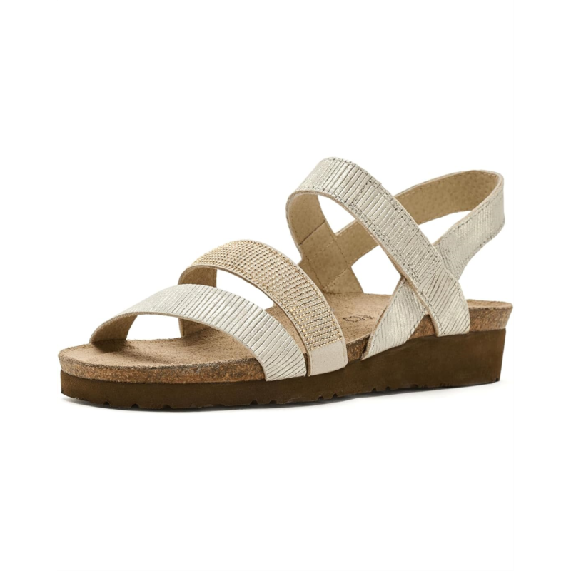 - Suede-wrapped, cork and latex footbed molds to the shape of the foot for a unique fit.