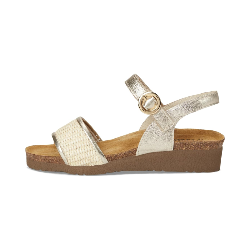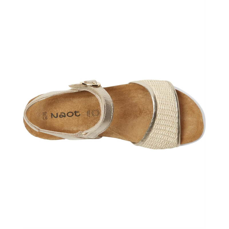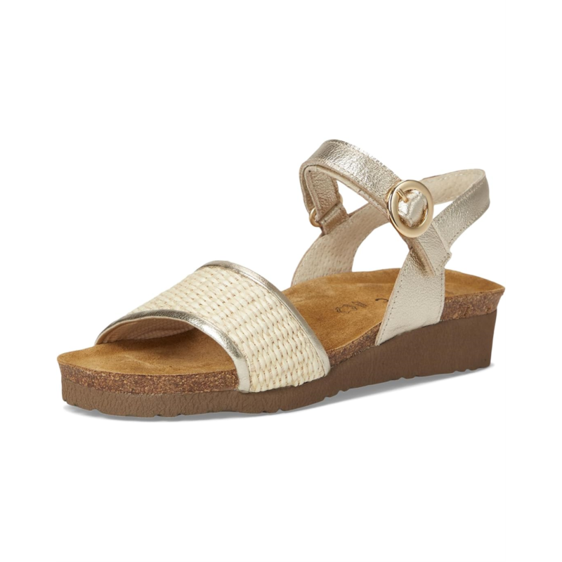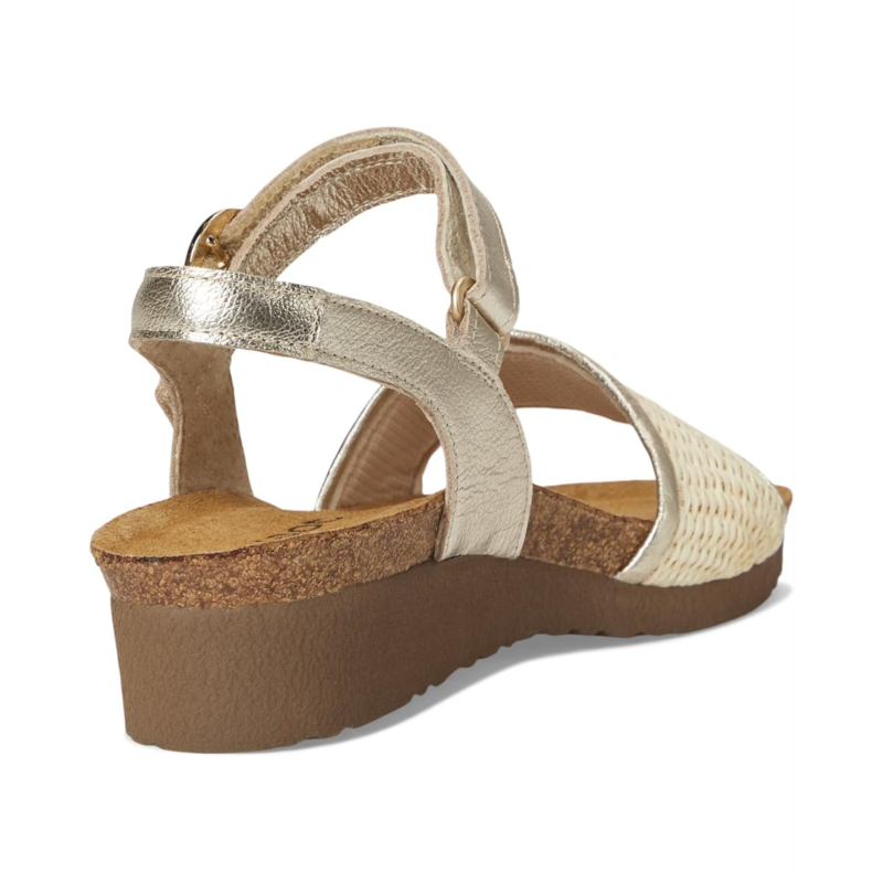 - Meet Naot Cecile - the perfect harmony of comfort and elegance. This backstrap sandal boasts a chic design with a faux buckle hook-and-loop strap and raffia detailing on the front strap, adding a touch of natural charm to any ensemble. The adjustable closure provides ease and convenience, ensuring you never have to sacrifice style for comfort. Cecile is the ideal choice for any occasion. Crafted with Naots anatomic cork and latex footbed wrapped in pampering suede and molds to the shape of your foot with wear, ensuring personalized comfort. Plus, its accepted by the American Podiatric Medical Association (APMA) for promoting good foot health.