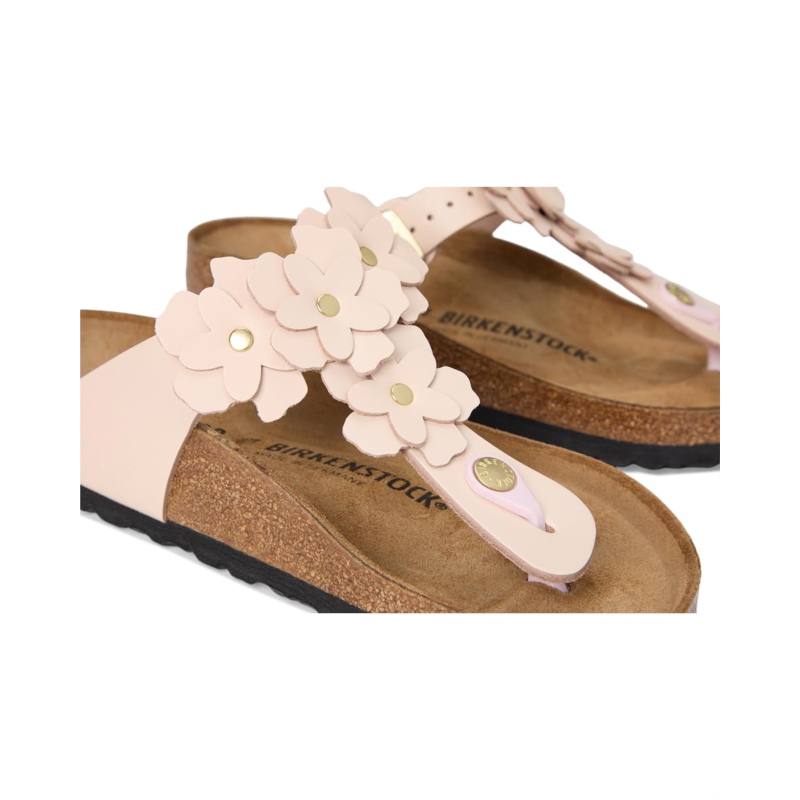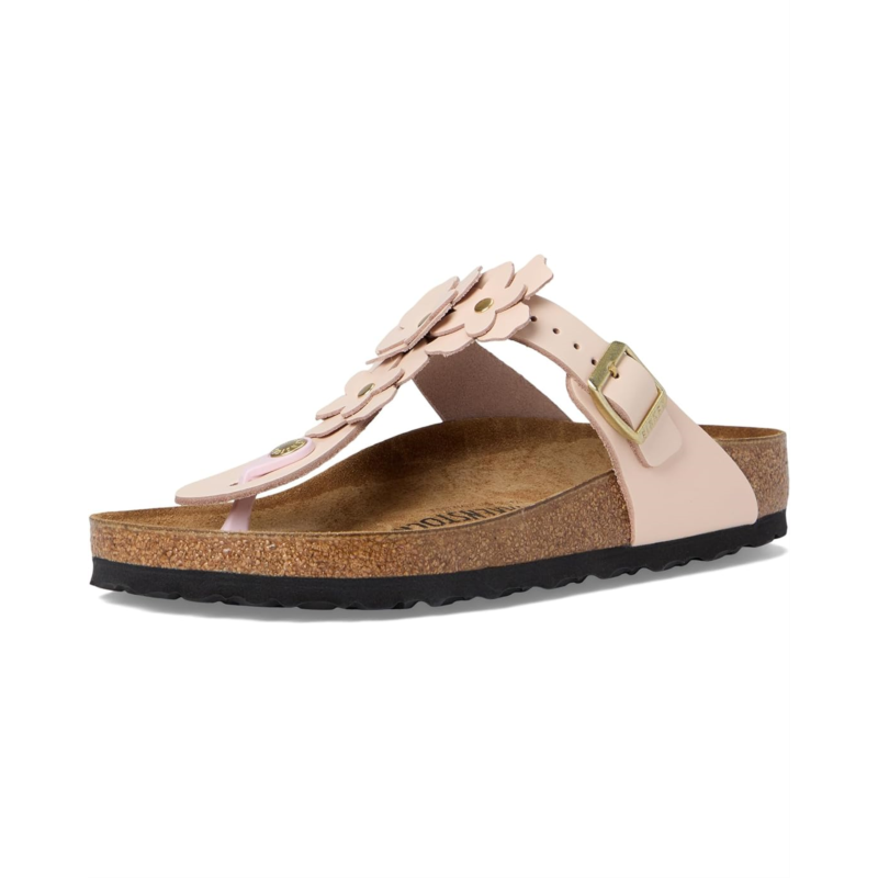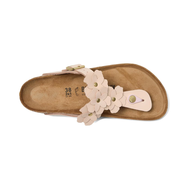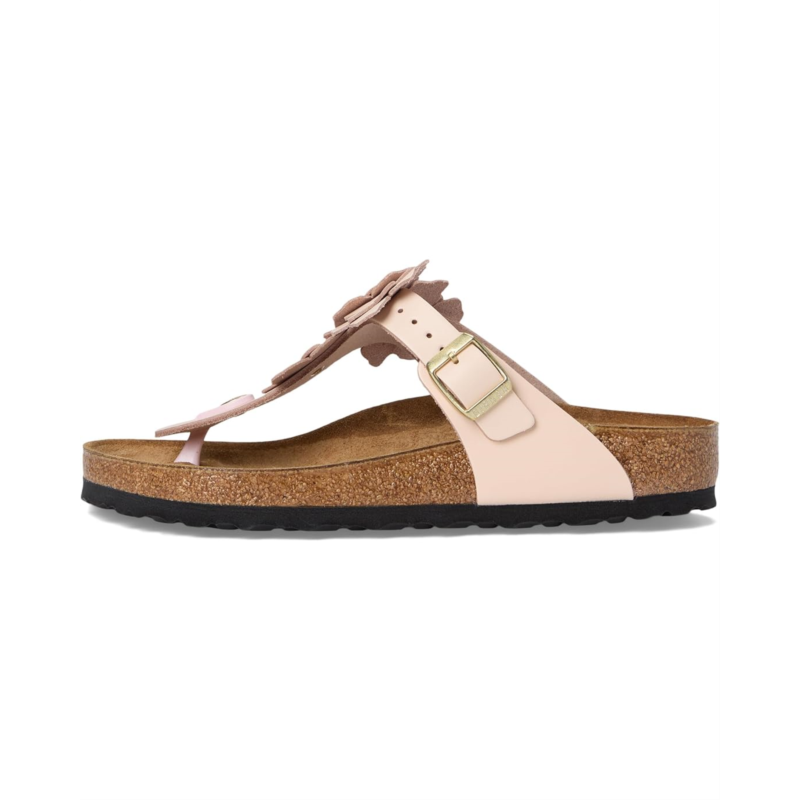 - Bloom into comfort by styling the Birkenstock Gizeh Flowers. Its supportive cork cradles your arches, while the adjustable buckle ensures a perfect fit. Soft suede lining and signature cork/latex footbed & midsole, they offer unparalleled comfort.