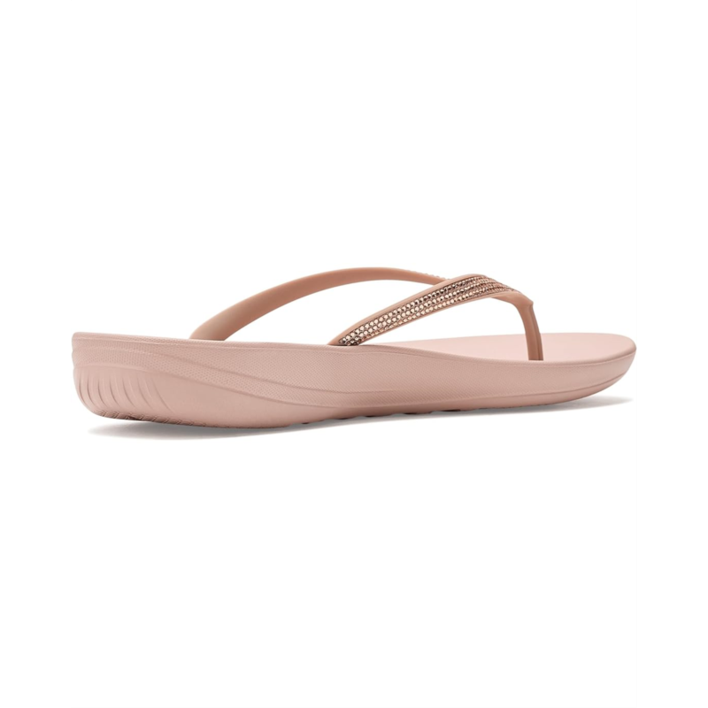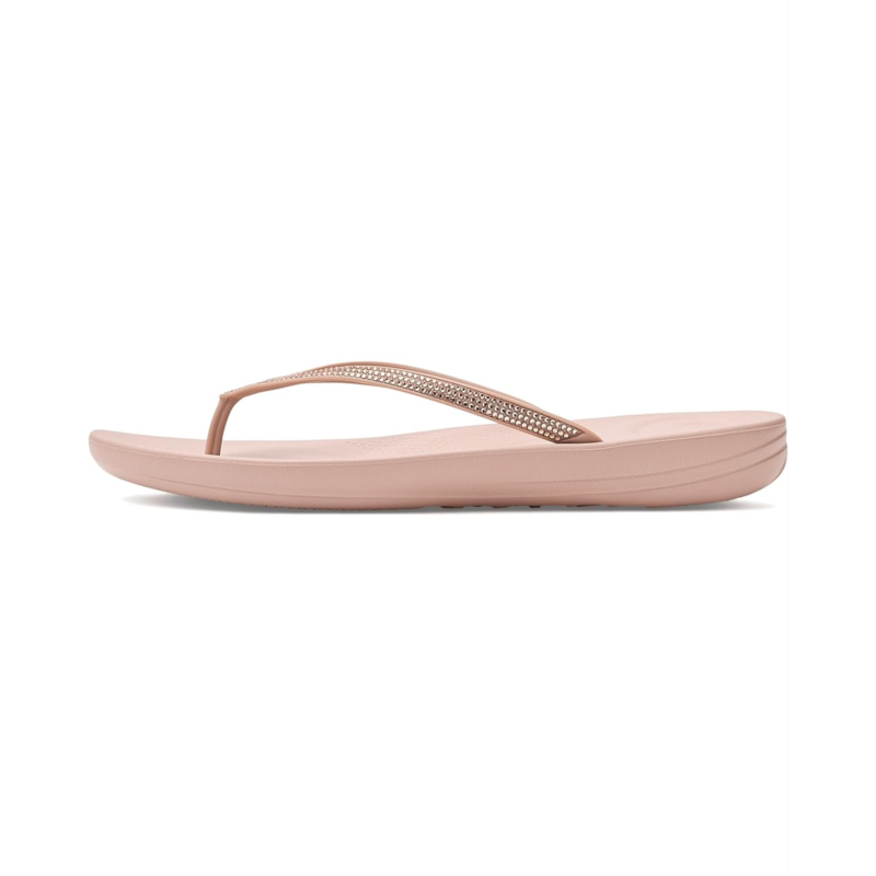 - FitFlops comfort-engineered, surfer-girl flip-flops smothered with micro-crystals. From the top, they look like your typical surfer-girl flip-flops. Underneath, theyre engineered with FitFlops featherlight, pressure-diffusing iQushion midsole tech. Made of high-rebound air-foam that retains its cushioning, with heel and ball-of-foot impact pillows, and a contoured footbed for natural support when you walk. Anatomically shaped straps hold the sandals to you, to help stop toes gripping. This version adorned with sparkling micro-crystals, throw a pair in your suitcase and youll find yourself wearing them to beach, bar and beyond. Waterproof and slip-resistant.