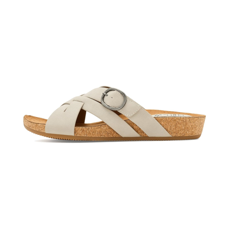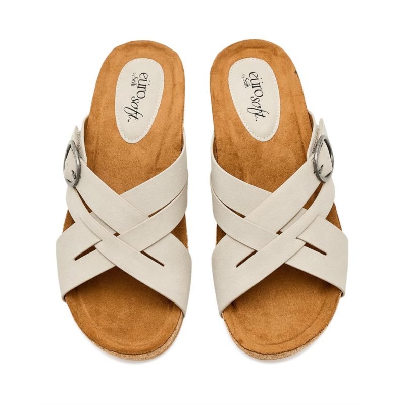 - The EuroSoft Grainger sandals are slide sandals with a buckle accent and a hidden hook-and-loop adjustability for a secure fit. These sandals are made of a woven faux leather upper, a rubber insole, and a faux suede lining. Their padded sock footbed offers extra comfort, while the lightweight construction makes them comfortable for all-day wear. Walk with cushioned comfort wearing these slip-on sandals.