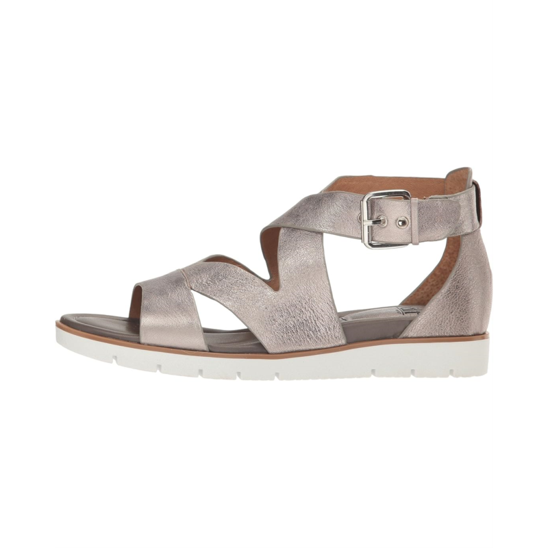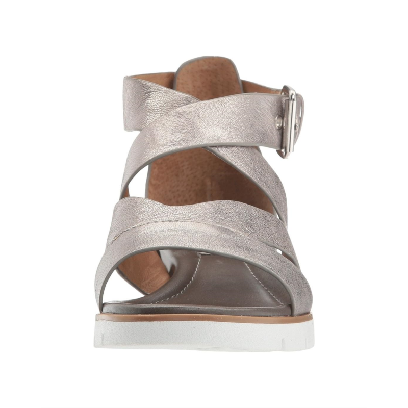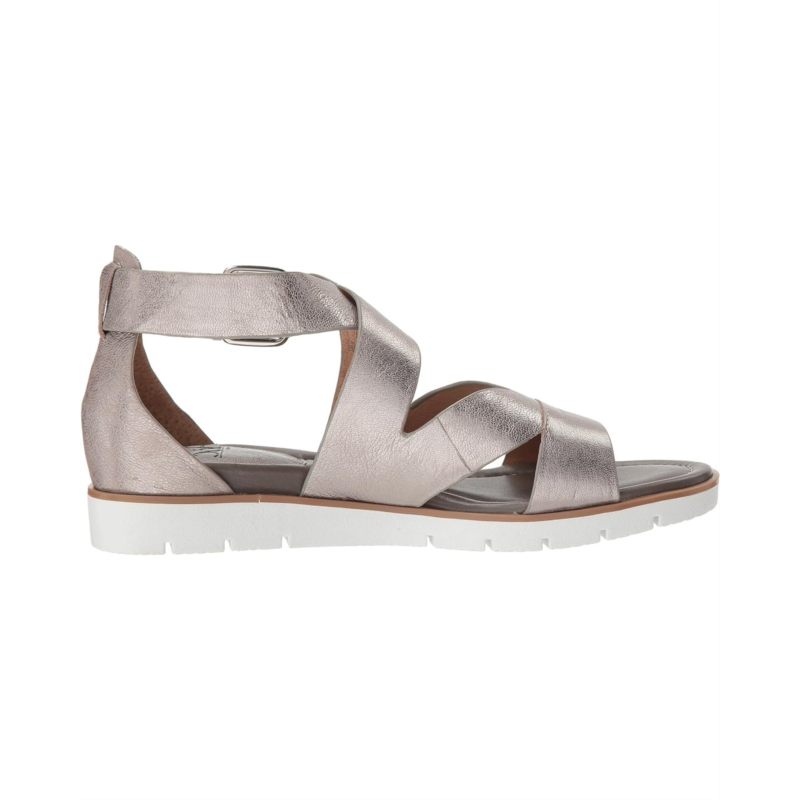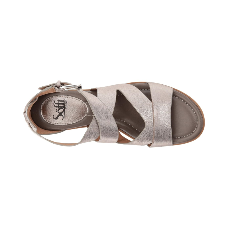 - Premium leather uppers with crisscrossing straps and an open toe.