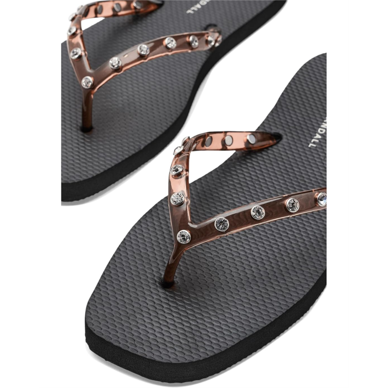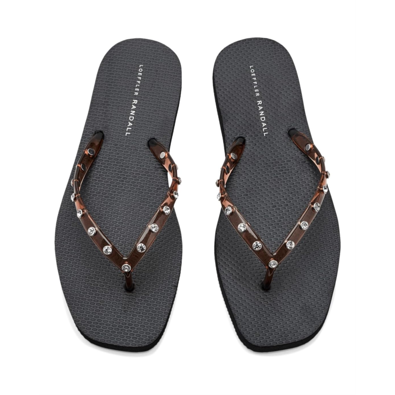 - The Loeffler Randall Taryn Crystal Jelly Flip Flop is accented with sparkling rhinestone embellishments for a glamorous touch. It features an open square toe and a slip-on design, paired with a comfortable foam footbed that balances style with wearability.