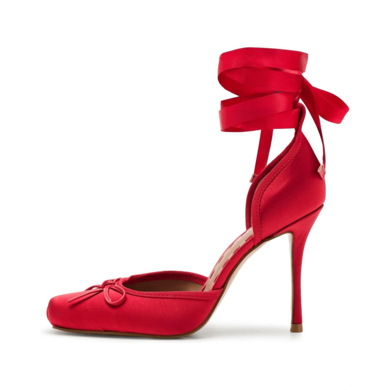 Elevate your style with the Steve Madden Larina pumps, featuring a sophisticated square toe silhouette and a sleek lace-up design. Crafted to combine elegance with modern edge, these heeled pumps offer a refined silhouette perfect for both formal occasions and chic everyday wear. Their satin finish adds a luxurious touch, while the lace-up detail ensures a secure, customized fit. They are made of a nylon upper, insole, and lining. These pumps are ideal for those seeking a statement piece that balances fashion-forward design with expert craftsmanship.
