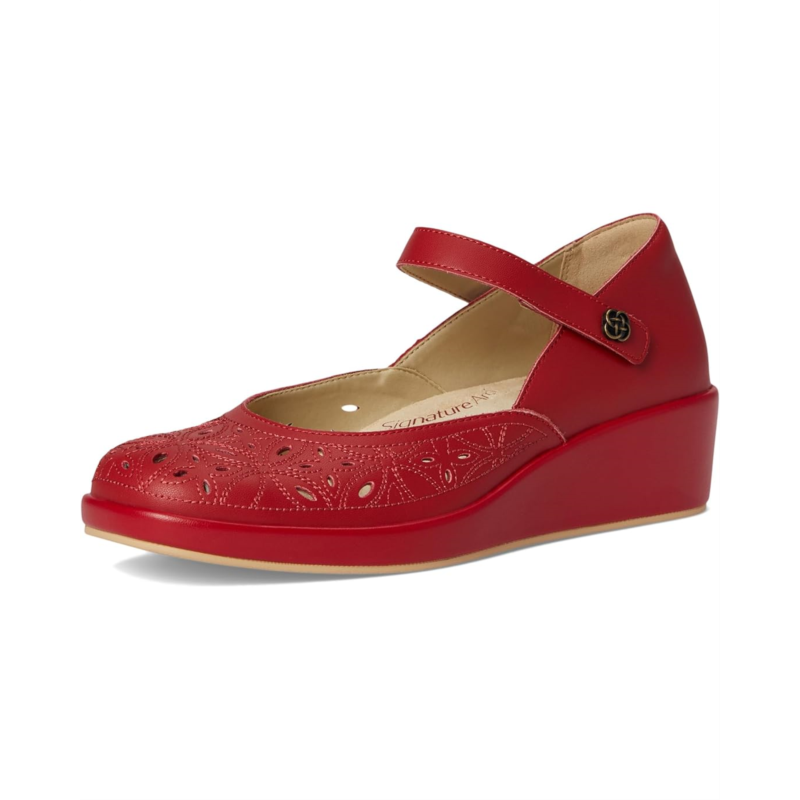 The Alegria Hayes elevates your modern look. Featuring premium leather uppers and an adjustable strap with a decorative button closure, this shoe ensures a secure and custom fit. Built on the advanced Tri-Form wedge outsole from Alegria, the Hayes delivers exceptional support, stability, and shock absorption for all-day comfort. The removable dual-density Signature Arch footbed promotes foot health, making this versatile style perfect for work or casual outings. Featuring adjustable strap with decorative button closure, and protective heel cup for added stability.