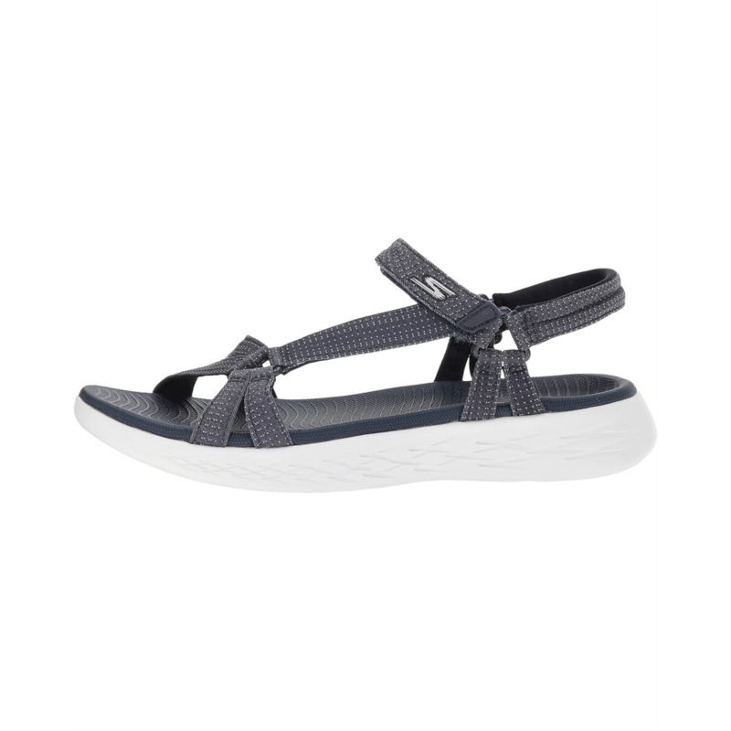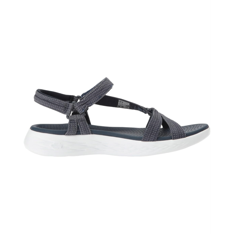 The SKECHERS On the GO 600 - Brilliancy sandal offers sporty style and premium comfort with a pique textured mesh fabric upper, open toe, and machine washable design.
