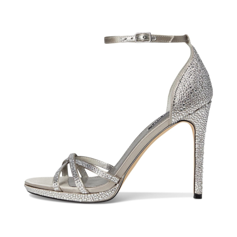 Dress to impress in the Nine West Lartay sandals. Featuring embellishments, high stiletto heel and an adjustable ankle strap. This sandal is sure to impress! Founded in 1978, Nine West empowers women to take on the world in style, from day to night.