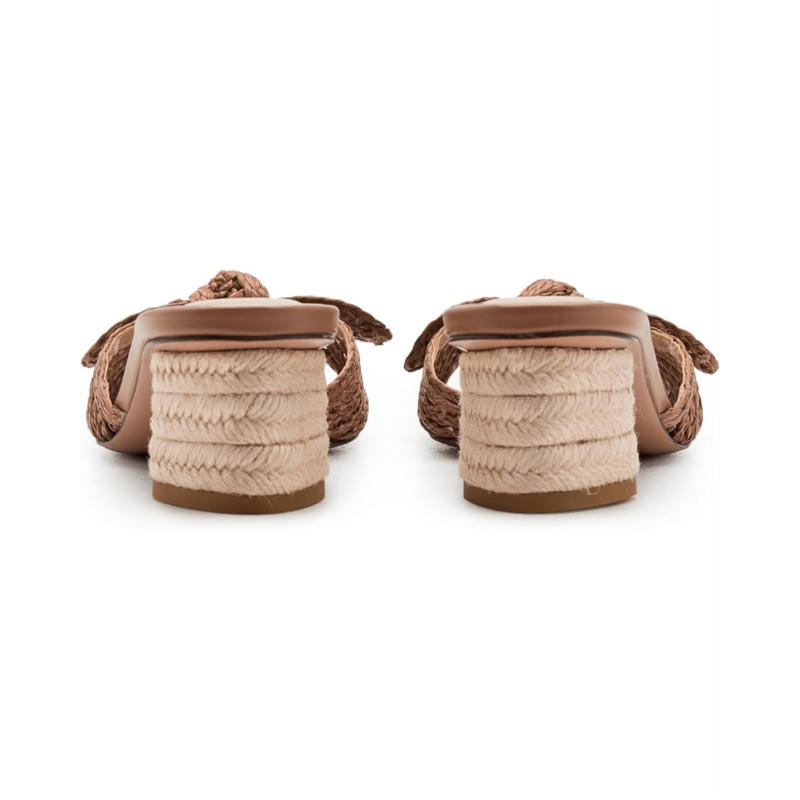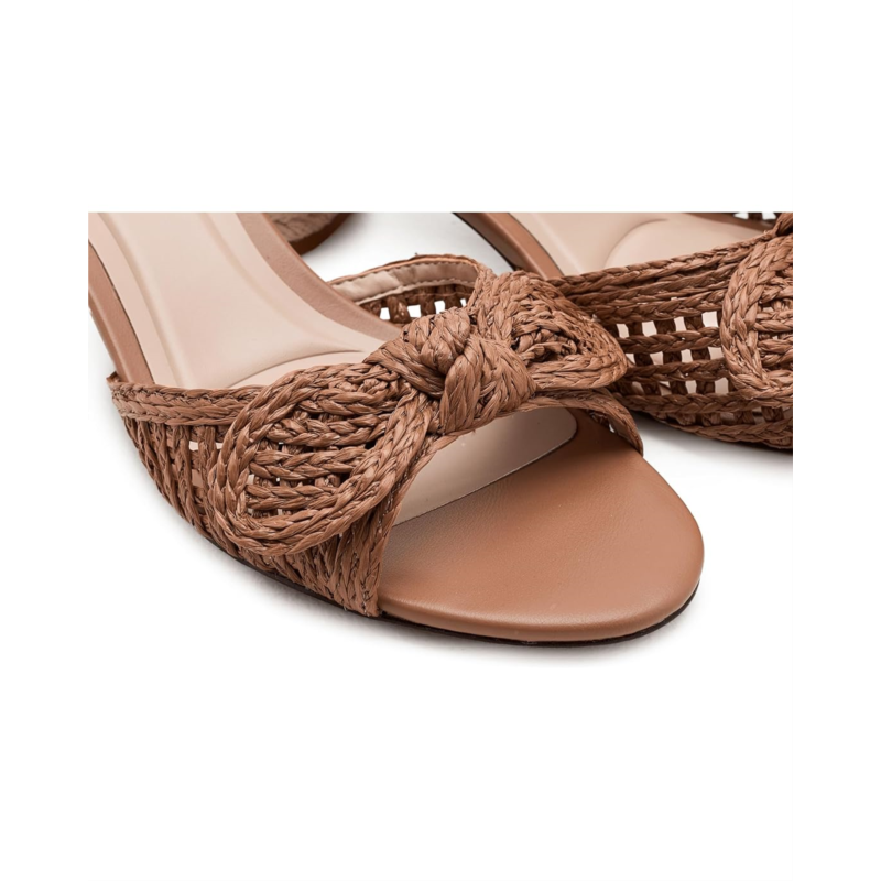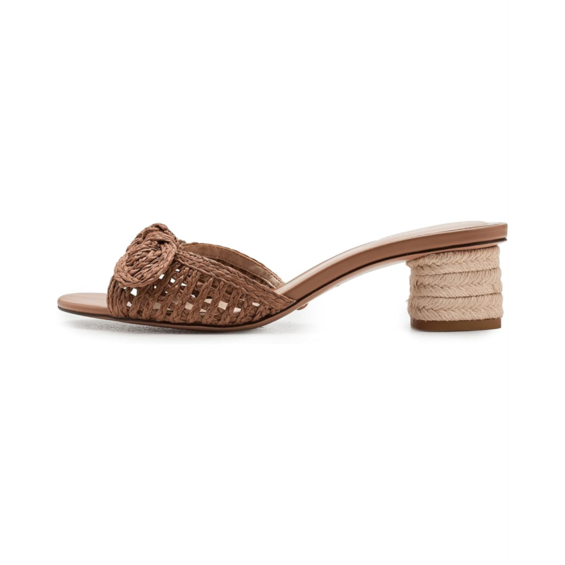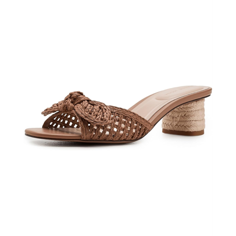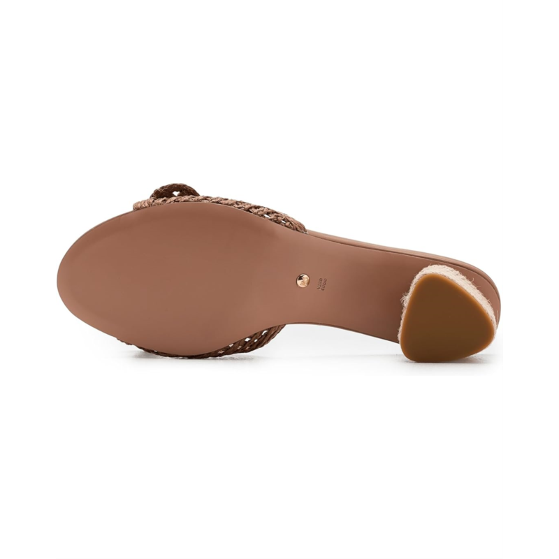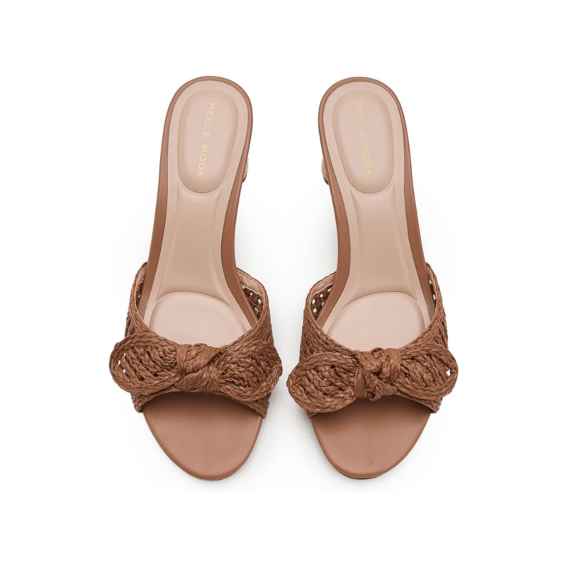 This Pelle Moda Eaden 2 slip-on heeled sandal brings a relaxed, artisanal feel to a refined silhouette. The woven upper is crafted with an open, basket-like texture and finished with a softly knotted detail across the vamp, adding dimension and visual interest while gently securing the foot. A cushioned insole provides comfort, while the sculpted midsole creates a smooth, elegant curve from toe to heel. The block heel is wrapped in natural rope detailing, offering a tactile contrast and a hint of coastal-inspired charm. Easy yet elevated, this design effortlessly balances casual texture with polished femininity.