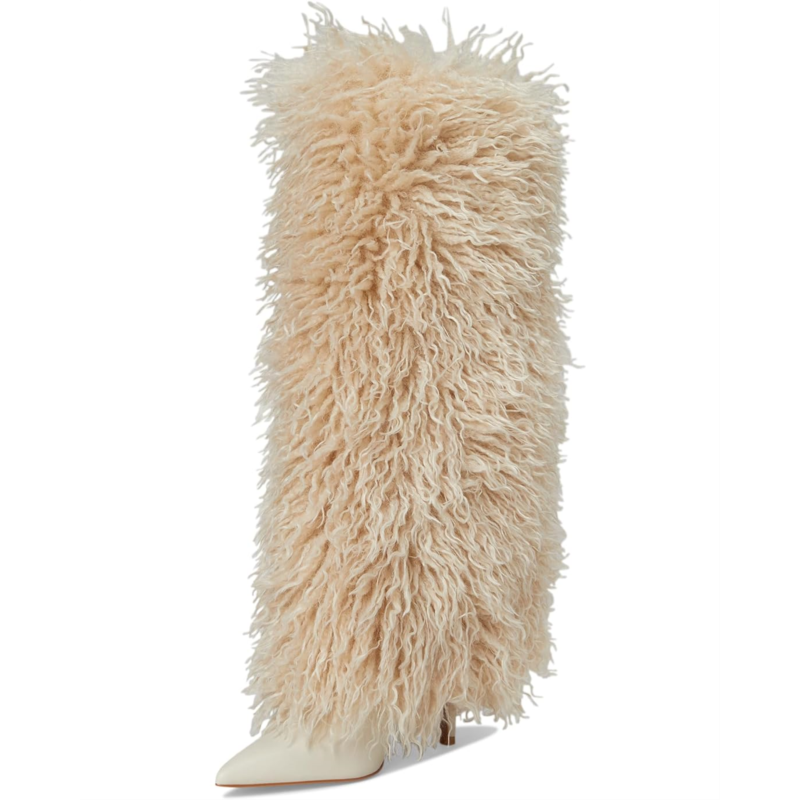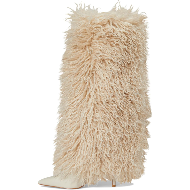 The Icon Boots by Steve Madden deliver striking style with a high-impact silhouette. These boots are knee-high with a pointed toe design, stiletto heel, and dramatic design details such as fold-over faux fur cuff.