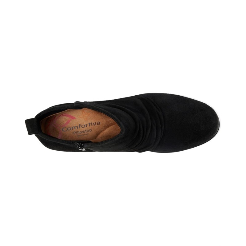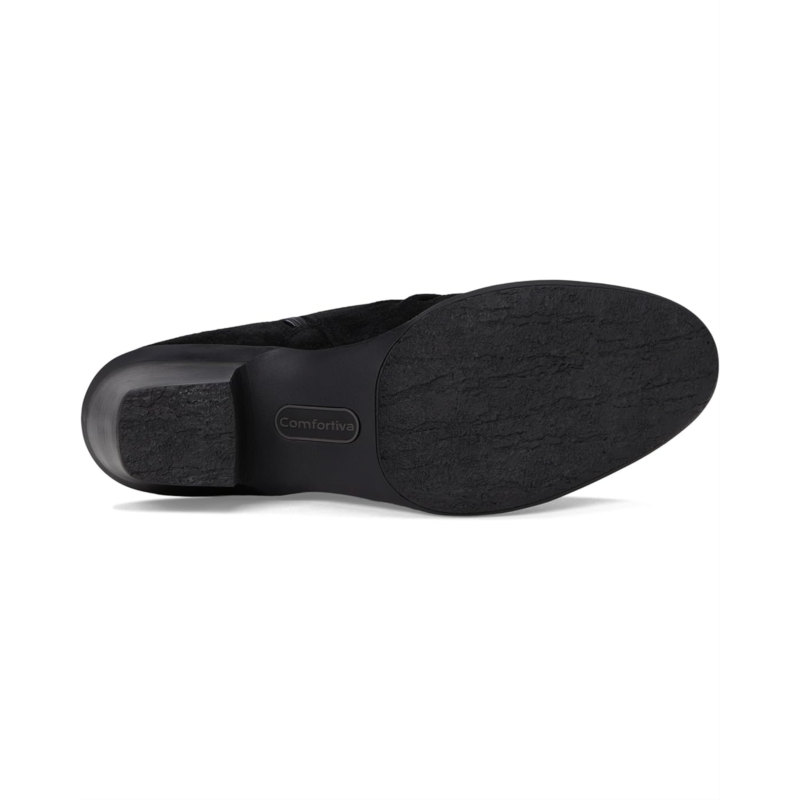 Step into uniqueness wearing the Comfortiva Brandy. Crafted from waterproof suede upper, fabric lining, and EVA insole, this pair of boots features round toe, inside zippered closure, block heels, and back pull tab.