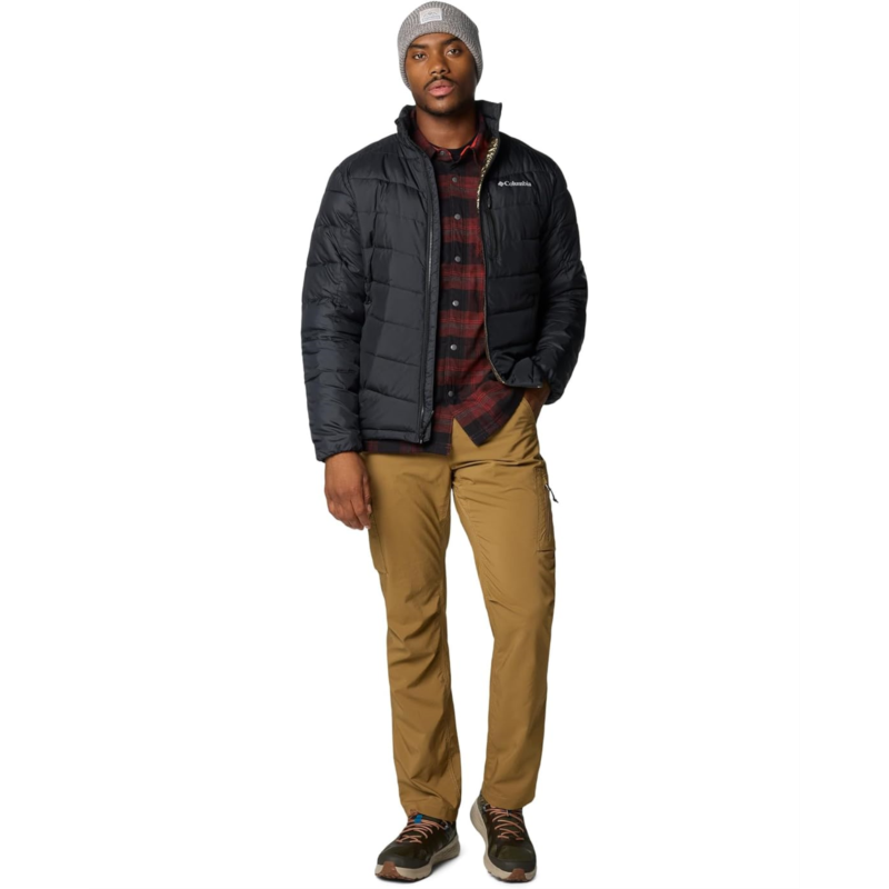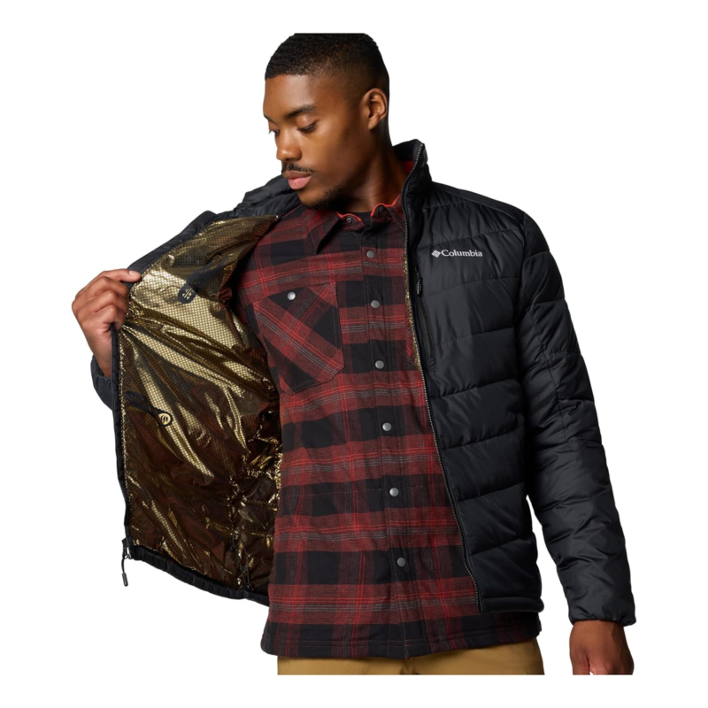 Featuring Thermarator insulation, the Columbia Labyrinth Loop II Jacket keeps you warm and dry on cold, damp days. This insulated jacket is made from water-resistant Omni-Shield fabric that repels water to keep you dry while the Omni-Heat Infinity lining offers added warmth. The long sleeves with elastic cuffs, drawcord adjustable hem, high collar, and chin guard make it a comfortable and durable choice. Fill your adventures with superior comfort and warmth wearing this zip-up jacket.