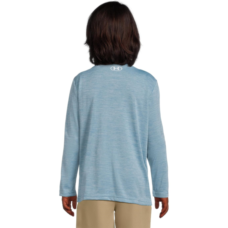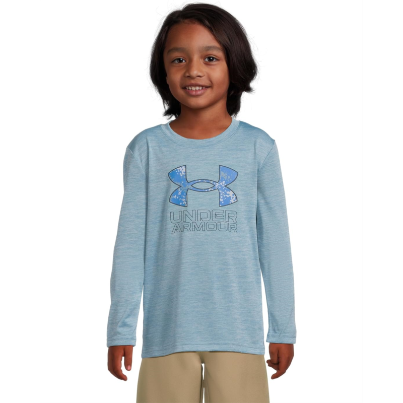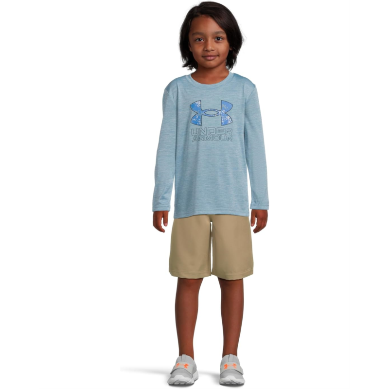 Add comfort and a hint of style wearing the Under Armour Kids Core Logo Twist Tech Long Sleeve Tee. The pull-on style breathable tee features a crew neck, long sleeves, UA graphic on the chest, and a straight hem.