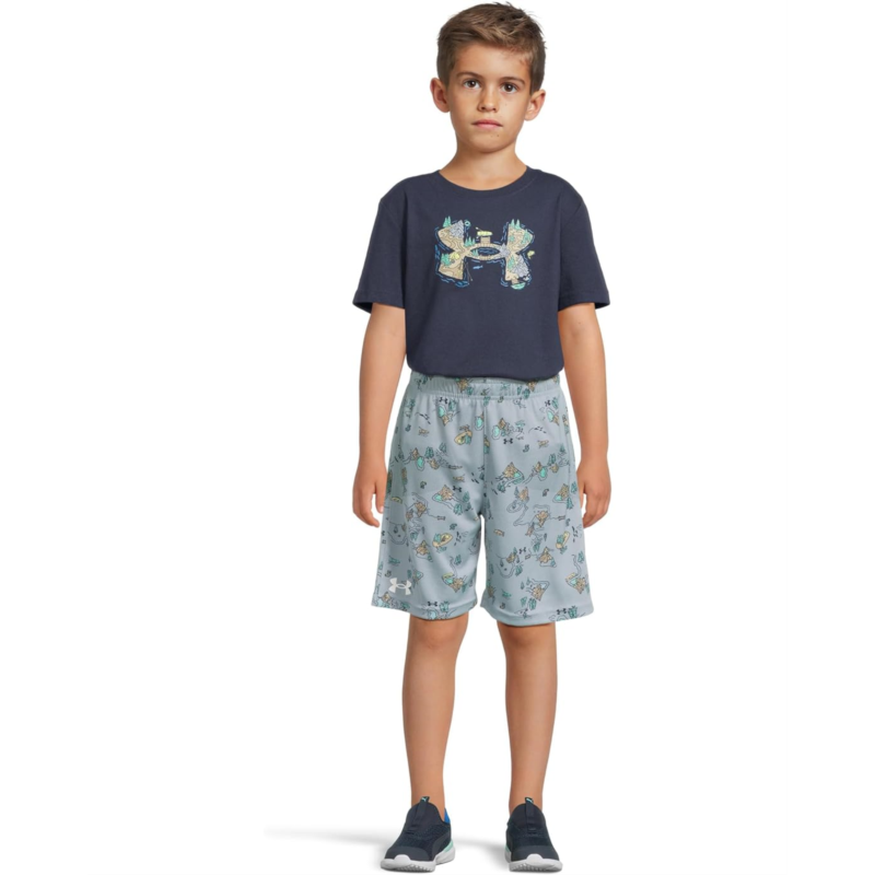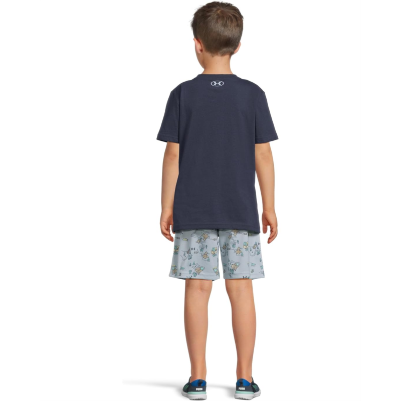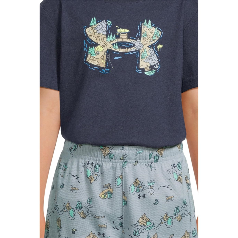 The Under Armour Kids US Lake Logo Set is designed for all-day comfort and play. The ultra-soft cotton-blend tee keeps things light and breathable, featuring a ribbed crew neckline, short sleeves, and bold graphic details on the front. Paired with moisture-wicking mesh shorts that offer cooling airflow, an encased elastic waistband, and playful graphic accents.