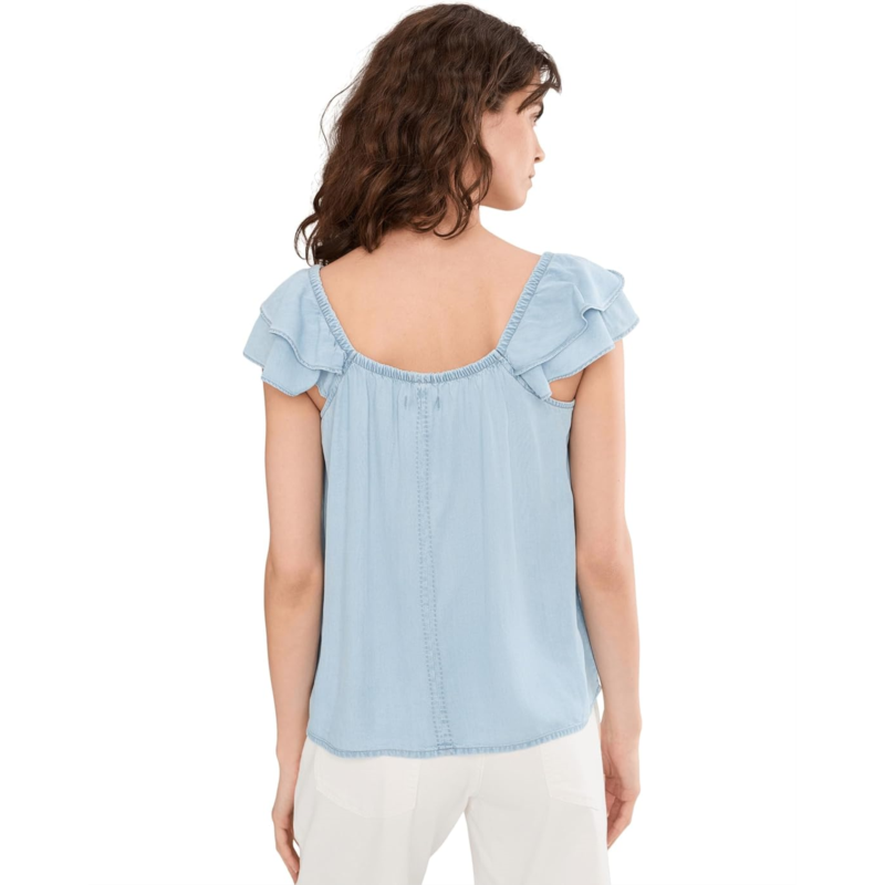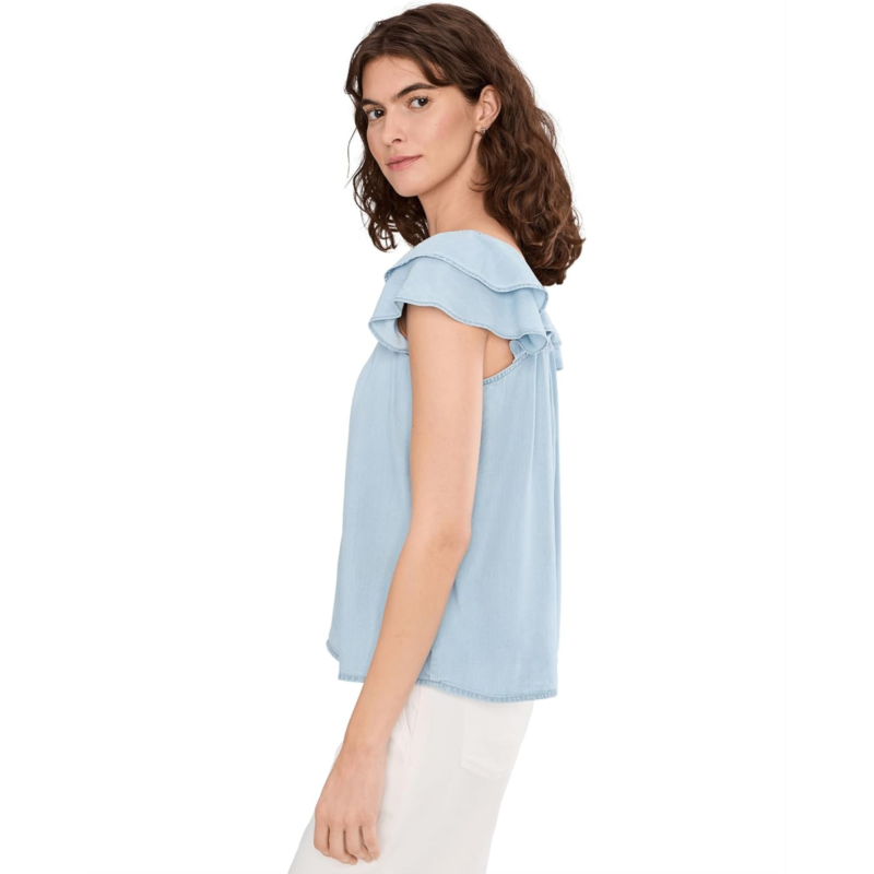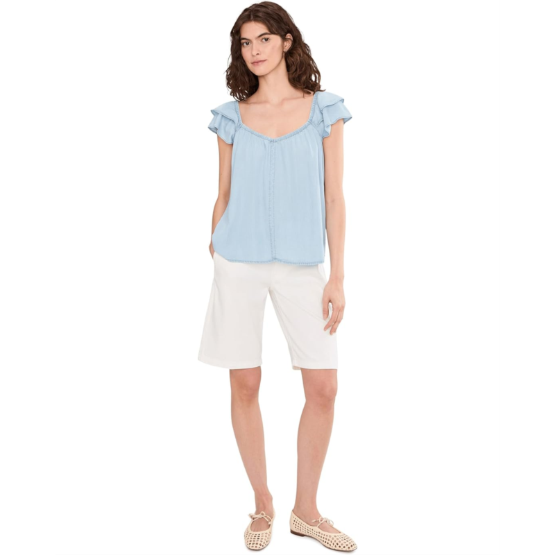 The Ariat Lynn Top is a chic western top with short ruffle sleeves, a scoop neckline, and a straight hem. Made from rayon, it offers a perfect blend of comfort and breathability. This short-sleeve top pairs perfectly with casual trousers or pants.