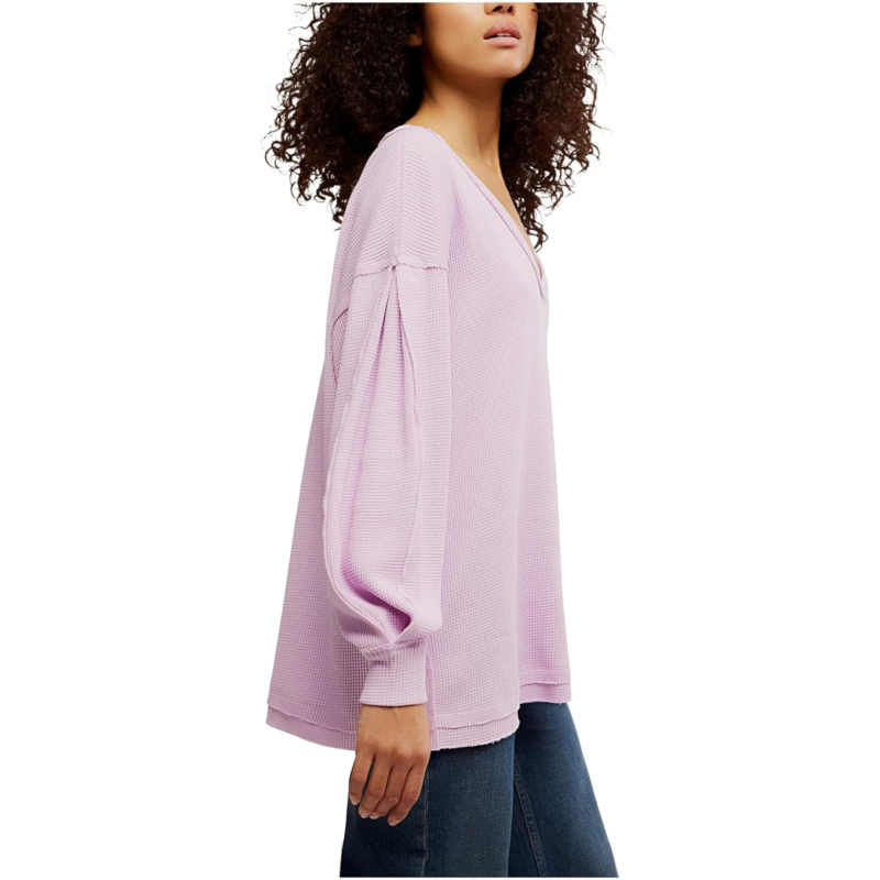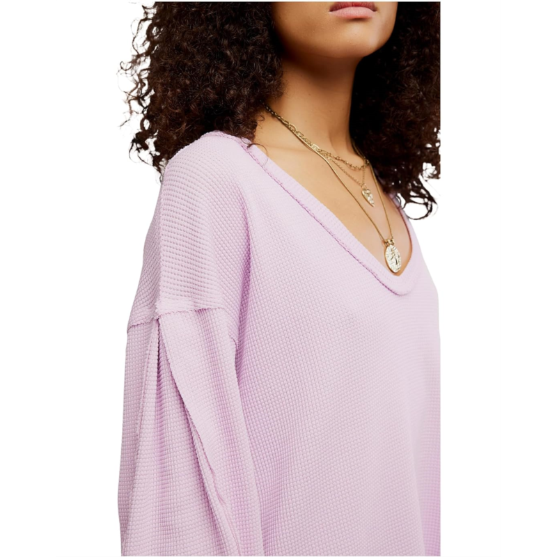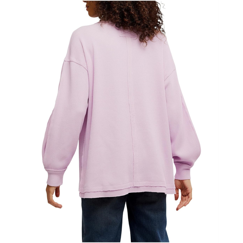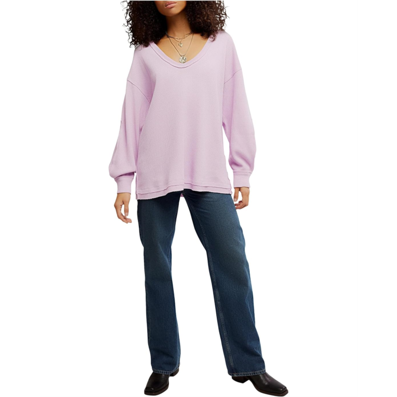 Experience comfortable and cozy vibes wearing the Free People Coast 2 Coast Thermal Sweatshirt, crafted in an oversized, longline fit. The sweatshirt features a V-neckline, dropped shoulders, long sleeves with ribbed cuffs, and a straight hem.