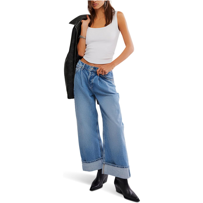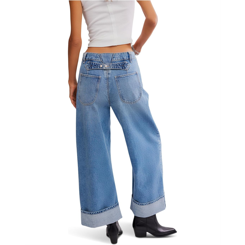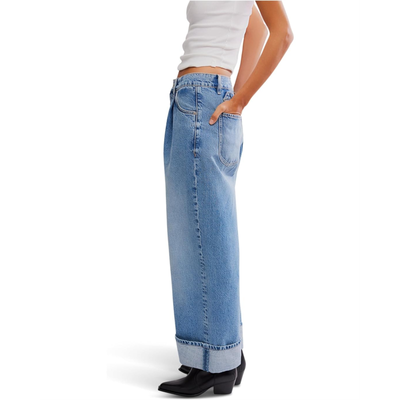 Say hello to your new denim obsession: The Free People Alia Wide Leg jeans are here to redefine effortless style. Featuring a straight fit and folded hem for that relaxed-yet-refined edge, these jeans strike the perfect balance between structure and flow. The mid-rise waist flatters your figure while the zip-fly with button closure and belt loops adds classic charm. Five functional pockets keep things practical, and the western-inspired yoke seam at the back adds a subtle nod to vintage Americana.
