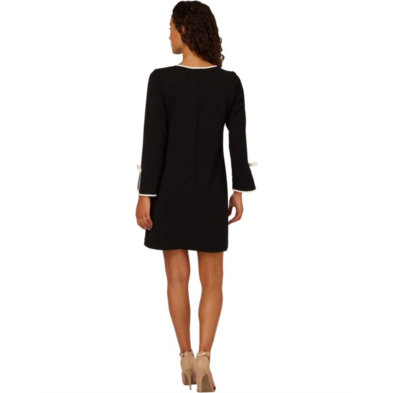 Styled with bow accents at the sleeves, the Adrianna Papell Long Sleeve Crepe Short Dress is a perfect choice for bridal showers, dinners, weddings, and special occasions. Made from a polyester blend, this above-the-knee dress has long sleeves, a crew neckline, and a straight hem. The zippered back closure offers easy on and off. This crepe dress makes a stylish addition to your wardrobe.