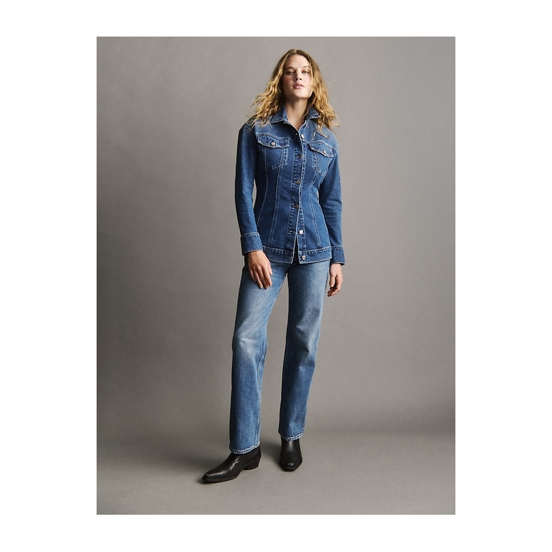 - Fit: A full-length jean thats fitted on the waist & straight all the way down.
