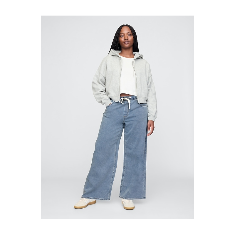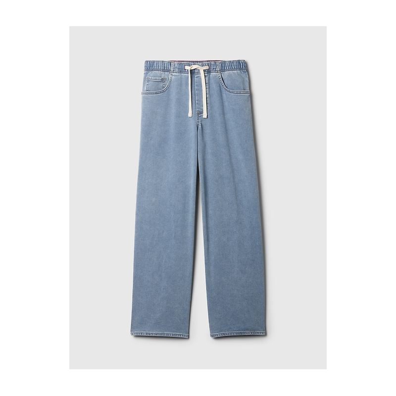 Fit:A full-length, knit denim baggy jean thats fitted on the waist & relaxed all the way down. ?