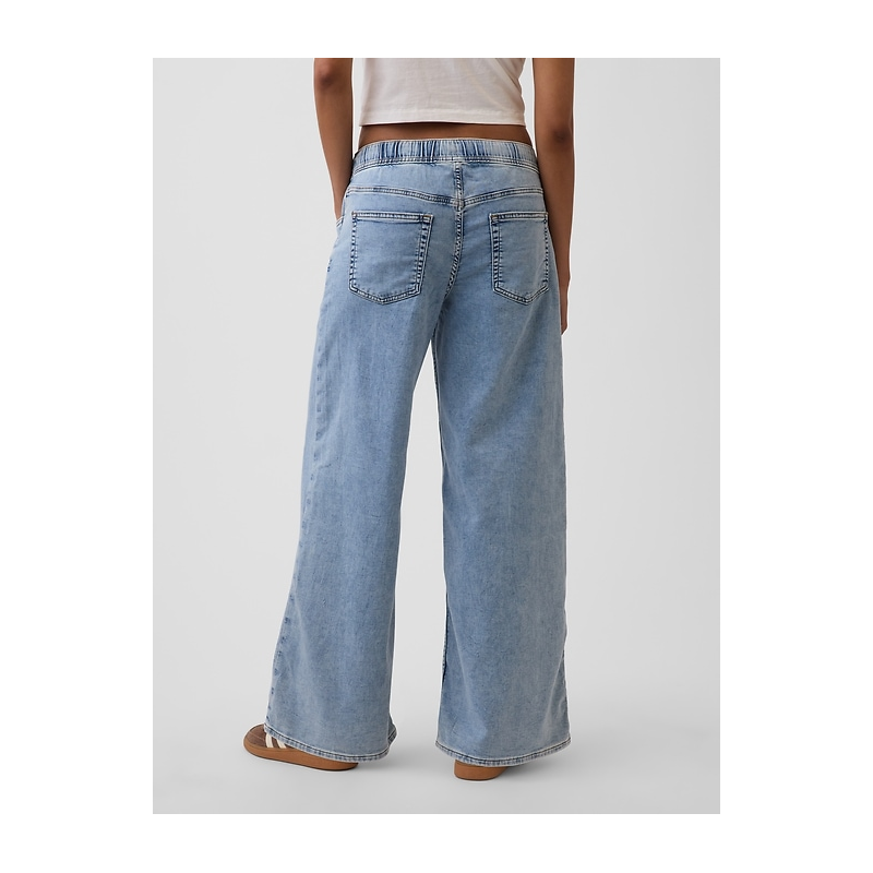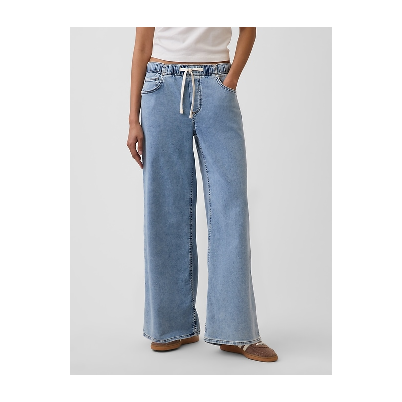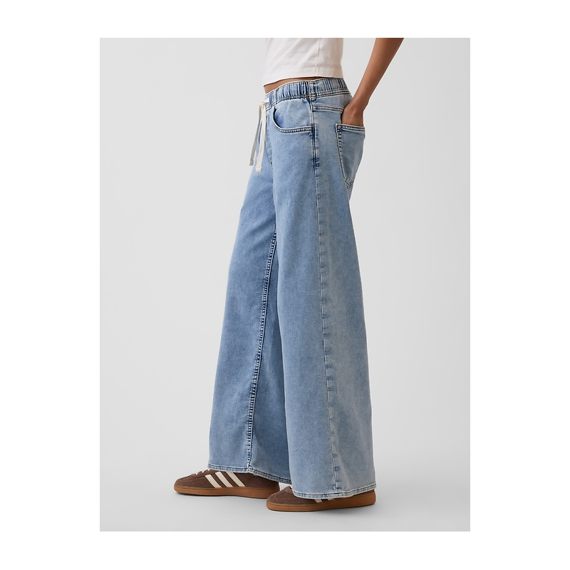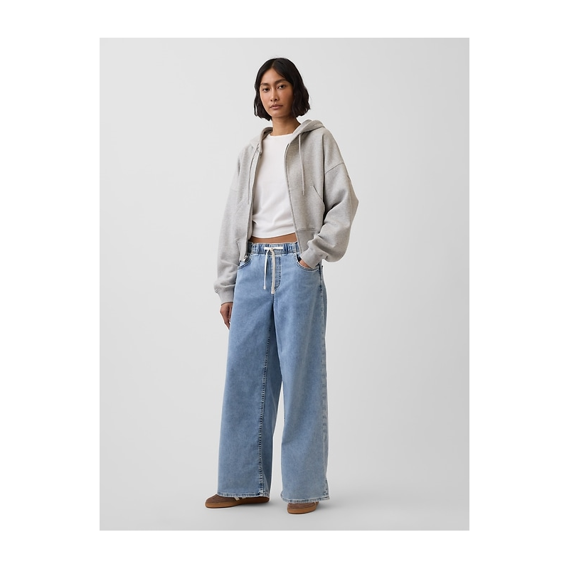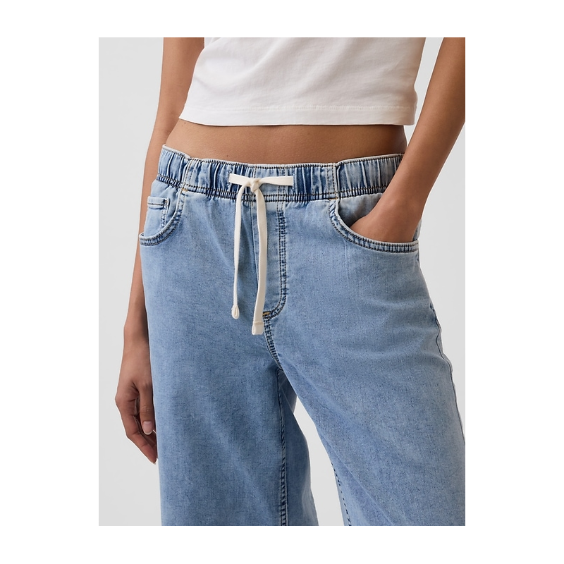 Look:A five-pocket, pull-on baggy jean in a medium indigo wash. ?