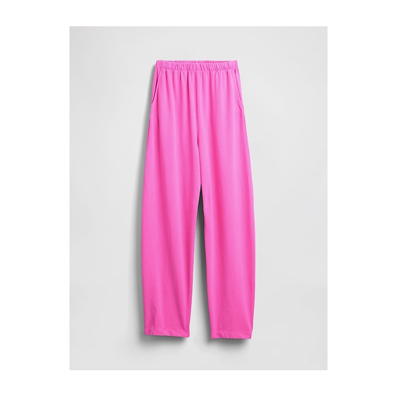 - Soft, heavyweight cotton barrel pants.