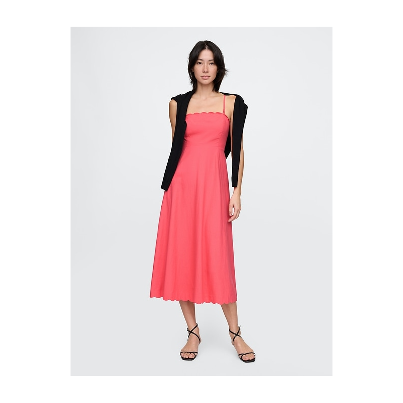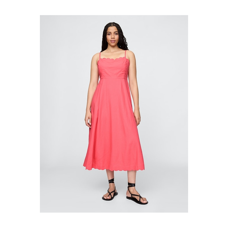 [US] Gap Linen-Blend Scalloped Midi Dress