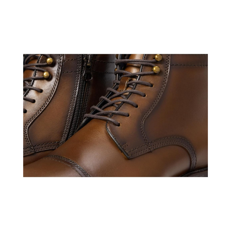 - Full leather upper offers a lace up closure with eyelets and hooks at the sides.