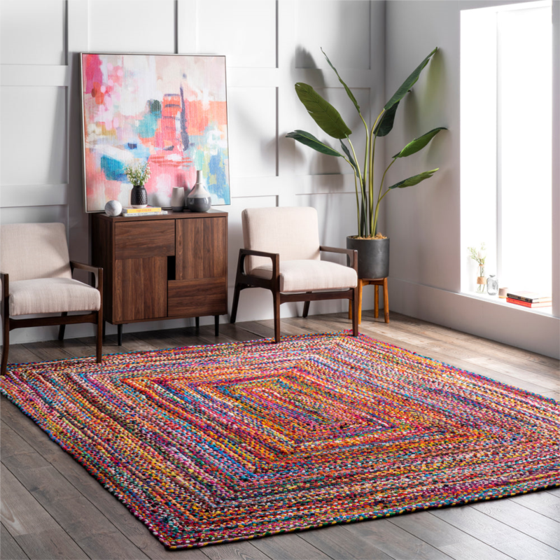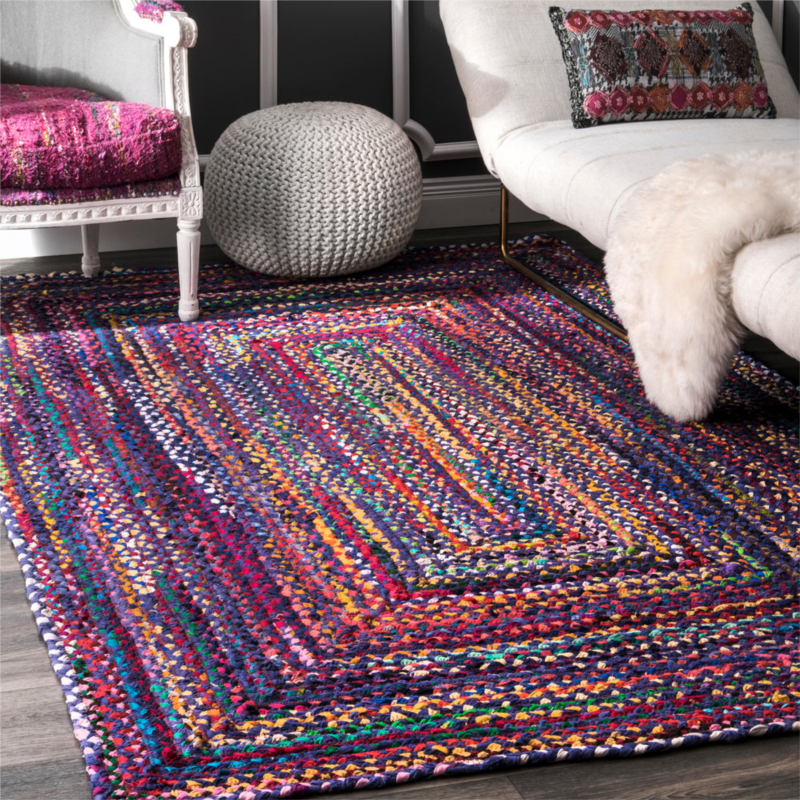 Brighten your room with this distinctively vivid rag rug. Hand crafted in India of recycled cotton, each piece carries with it a variation in color and pattern unique to the artisan who wove it. Because of the handmade nature of these rugs, no two will look exactly alike.