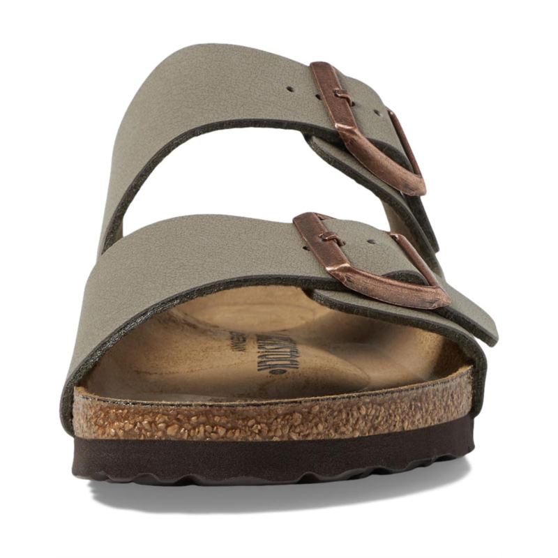 - An icon of timeless design and legendary comfort, the Arizona sandal has been defining style since 1973. The laid-back look comes in durable Birkibuc for a brushed, leather-like finish. Complete with legendary BIRKENSTOCK design elements, like a contoured cork-latex footbed for the ultimate in support.
