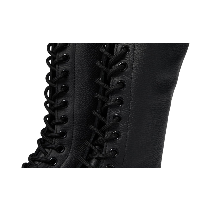 - Side zipper and traditional lace-up system with 14 metal eyelets.
