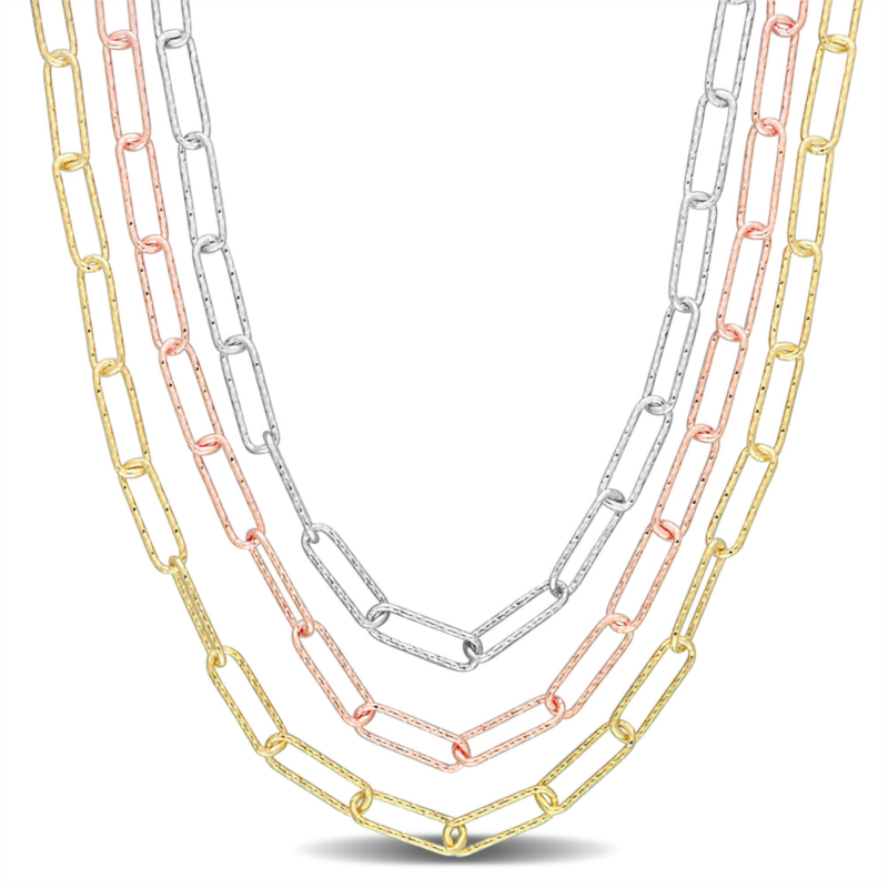 Mimi & Max multi-strand paperclip chain necklace in 3-tone 18k gold plated sterling silver 18 in