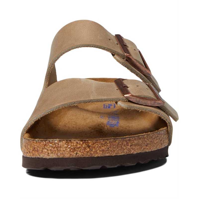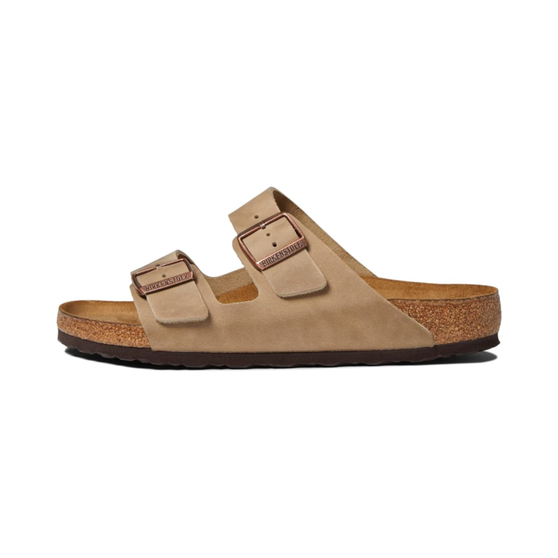 Understanding Widths: Narrow accommodates Narrow to Regular widths. Regular accommodates Regular to Wide Widths.- The BIRKENSTOCK Arizona is a genuine classic that has been delighting both men and women for decades. This simple sandal with two straps stands for timeless design and has long held cult status thanks to its comfort factor. With its additional foam layer, the soft footbed offers extra comfort and pampers feet - all day long. The upper is made from extra thick, oiled nubuck leather with an open-selvage finish.