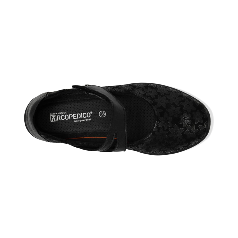 - The Arcopedico Cosmo mary jane features a synthetic upper, asymmetrical elastic strap, and a patented twin-arch support system.