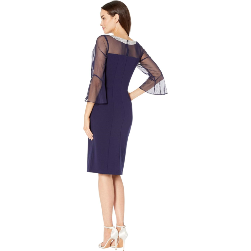 [US] Womens Alex Evenings Short Shift Dress with Beaded Illusion Neckline and Bell Sleeves