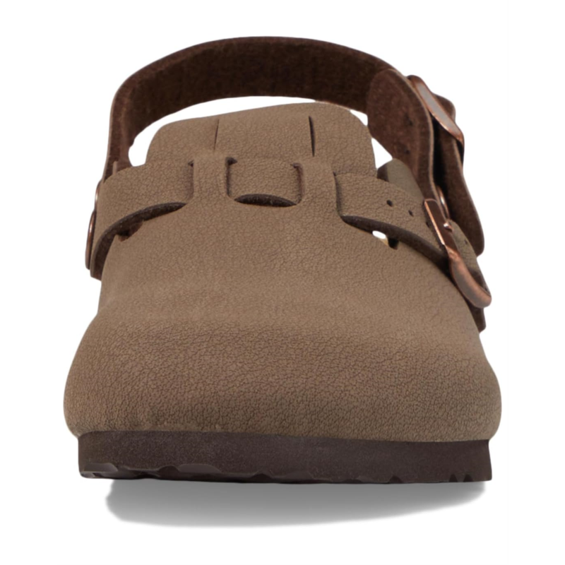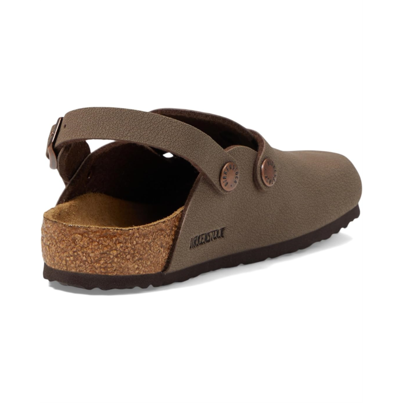 - Contoured cork footbed supports the arches of the foot and cradles the heel for all-day comfort.