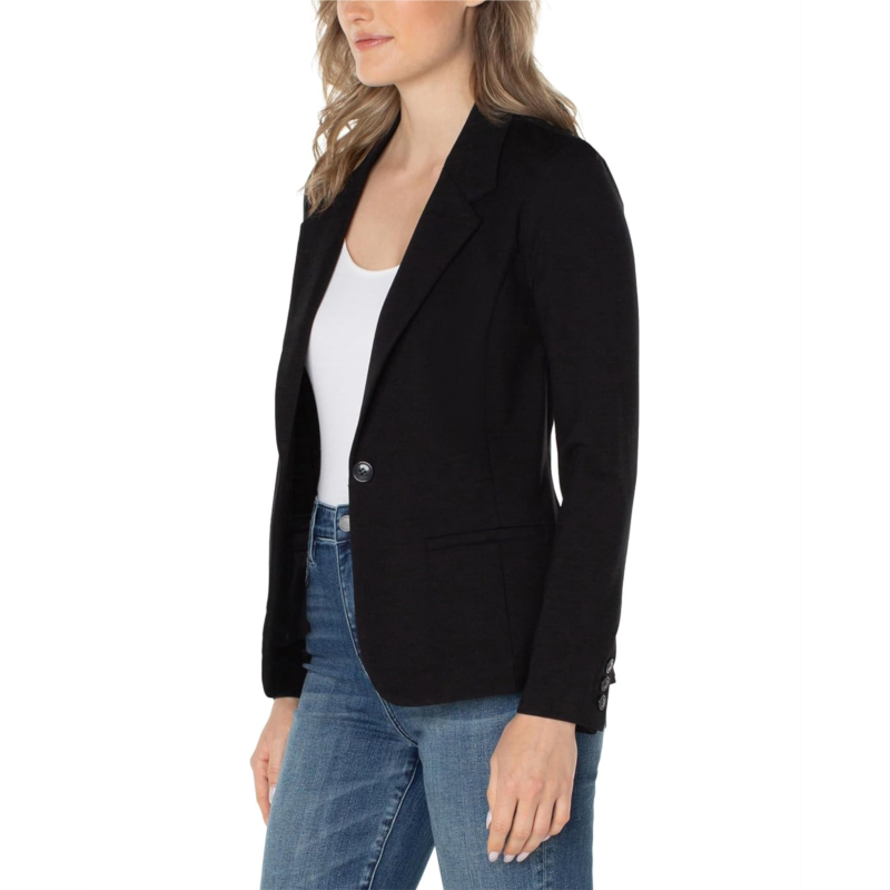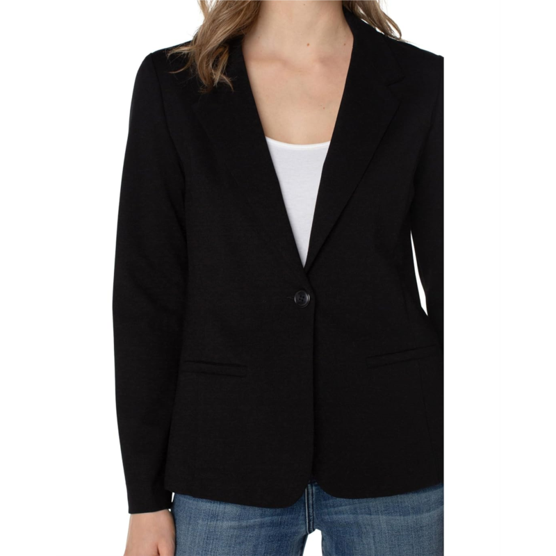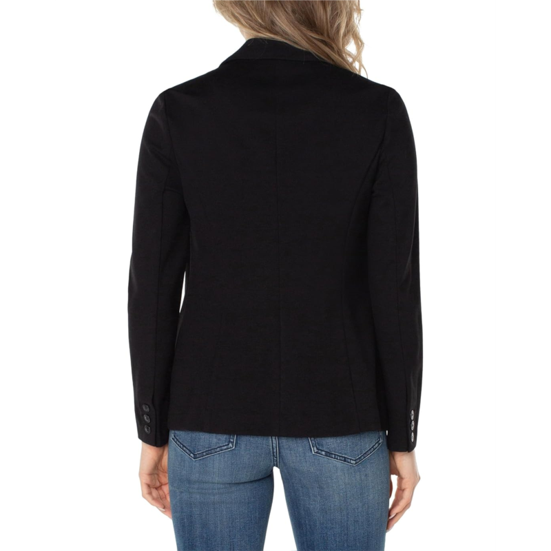 - Front welt pockets and vertical princess seams lend polished structure to the Liverpool Fitted Knit Blazer.