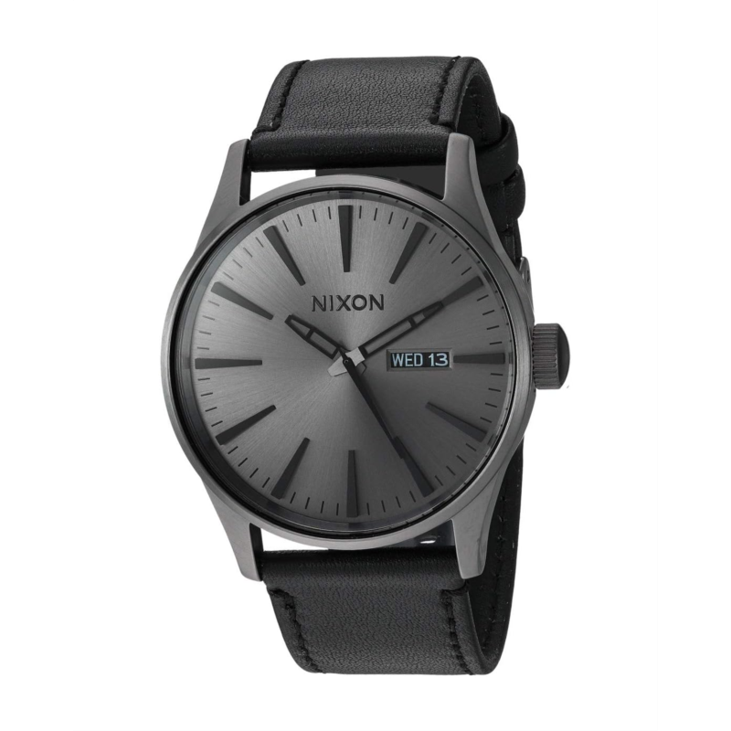 - There''s no chain of command here; it''s all you with The Sentry Leather watch from Nixon. Featuring a custom solid stainless steel case, this watch offers a hardened mineral crystal, a triple gasket crown with enamel fill, stainless steel screw down caseback and spring pin lugs.