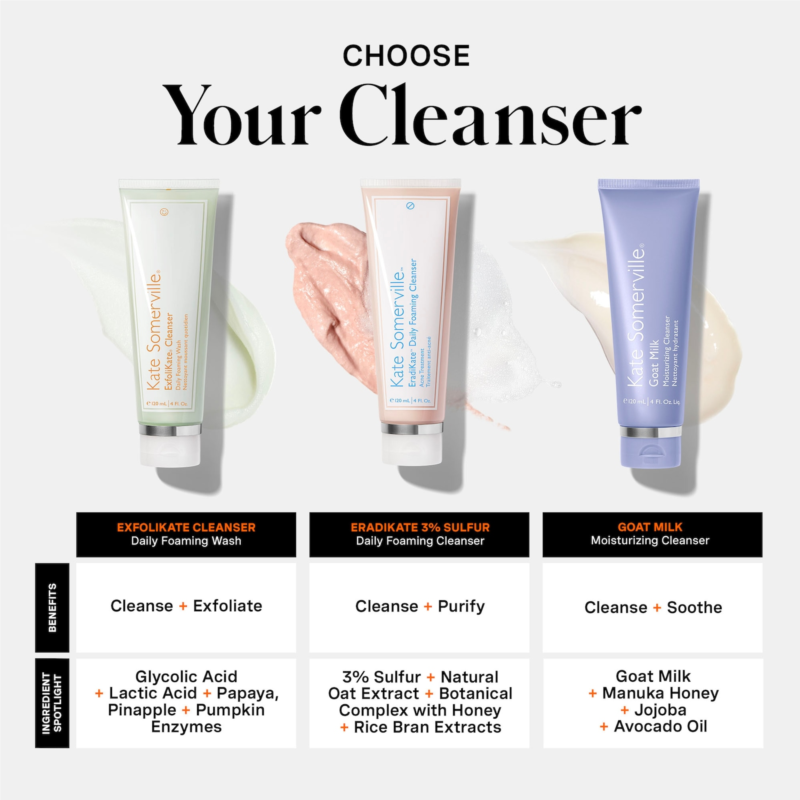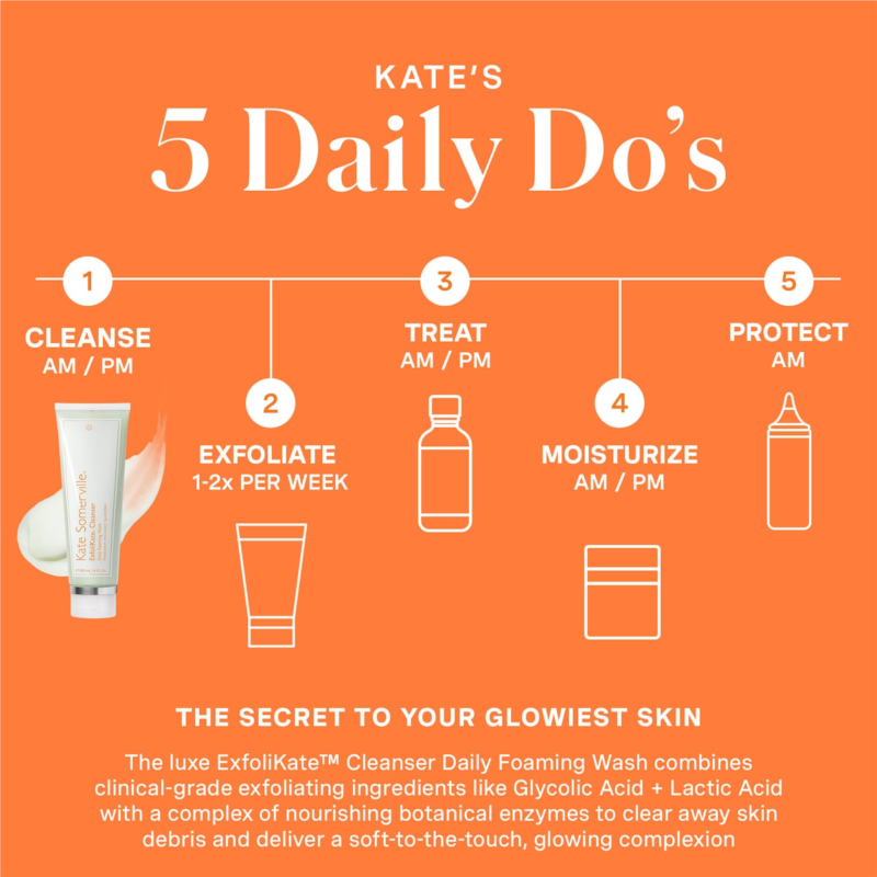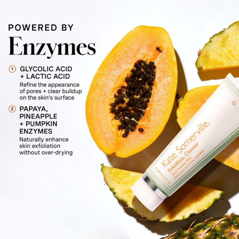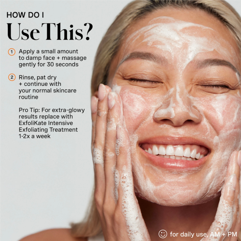 What Else You Need to Know: A daily exfoliating foaming cleanser. Gently removes makeup, SPF, and other impurities. Glycolic and Lactic Acids clear pores. Pineapple, pumpkin, and papaya enzymes cleanse without over drying. Pairs perfectly with ExfoliKate Intensive Exfoliating Treatment for visibly poreless, perfected skin.