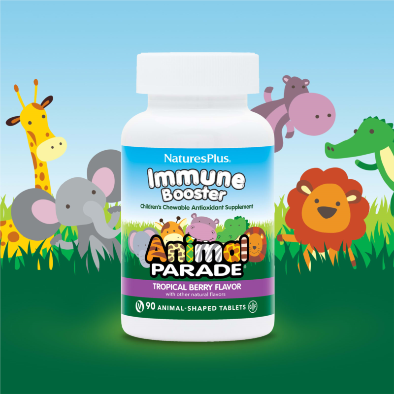 NaturesPlus Animal Parade Kids Immune Booster Tropical Berry 90 Animal-Shaped Tablets