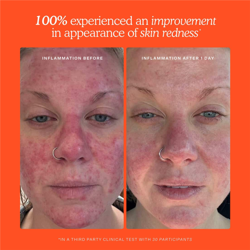 - 100% experienced an improvement in appearance of skin redness after 1 hour