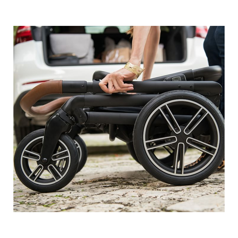 - Compact fold-away axle for a more compact fold. One-piece fuss-free, compact fold no matter which way the seat is facing. Stands when folded.