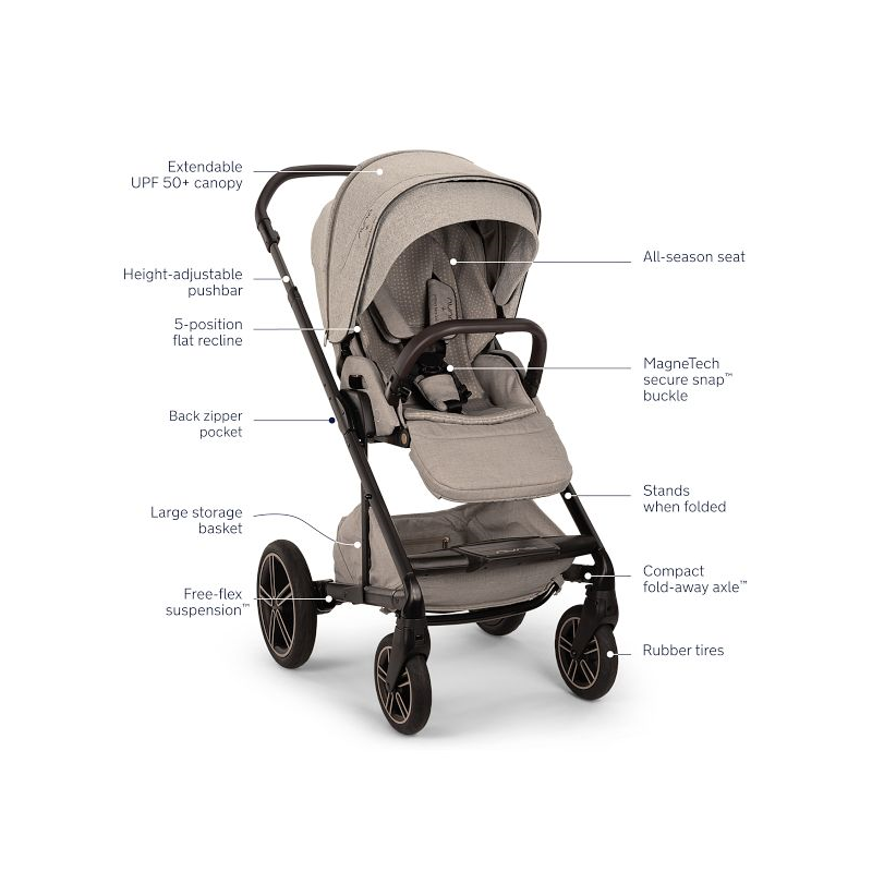 Sleek and lightweight enough to be pushed with one hand, the Nuna MIXX Next Stroller is cleverly designed with all-wheel suspension and easy maneuverability for a smooth and comfortable ride. Featuring a plush seat that fully reclines, this durable stroller will keep your little one cozy and undisturbed when you’re on the go. Plus, the full-coverage UPF 50+ canopy with a peekaboo window helps shade baby while you keep an eye on them, and the large storage basket lends ample space for all their essentials.