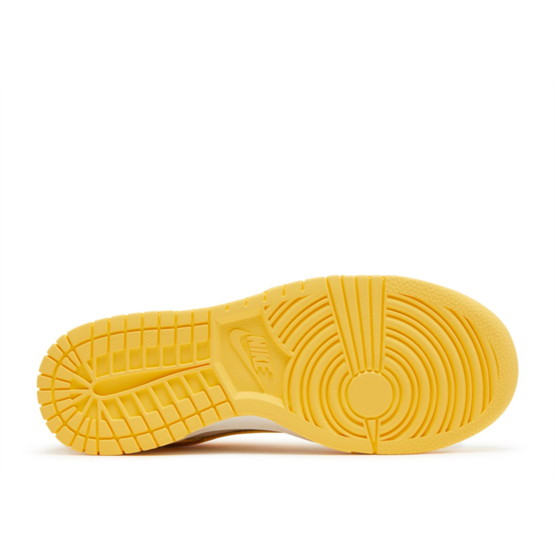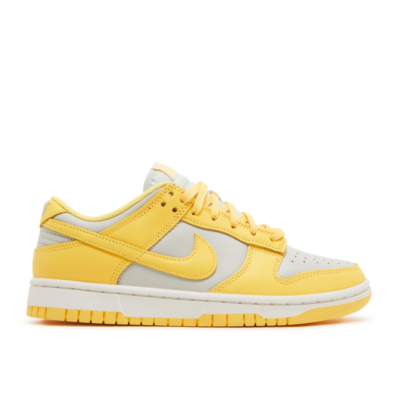The Nike Women''s Dunk Low ''Citron Pulse'' is a throwback to the shoe''s original ''Be True to Your School'' series of 1985, characterized by classic two-tone color blocking. The vintage silhouette of the shoe features a Light Bone foundation that is complemented by vibrant yellow overlays and a matching Swoosh on its all-leather upper. A comfortable fit arrives via the padded low-cut collar, while the toe box is perforated for enhanced ventilation. Underfoot, a yellow rubber outsole provides necessary traction beneath a crisp white midsole.
