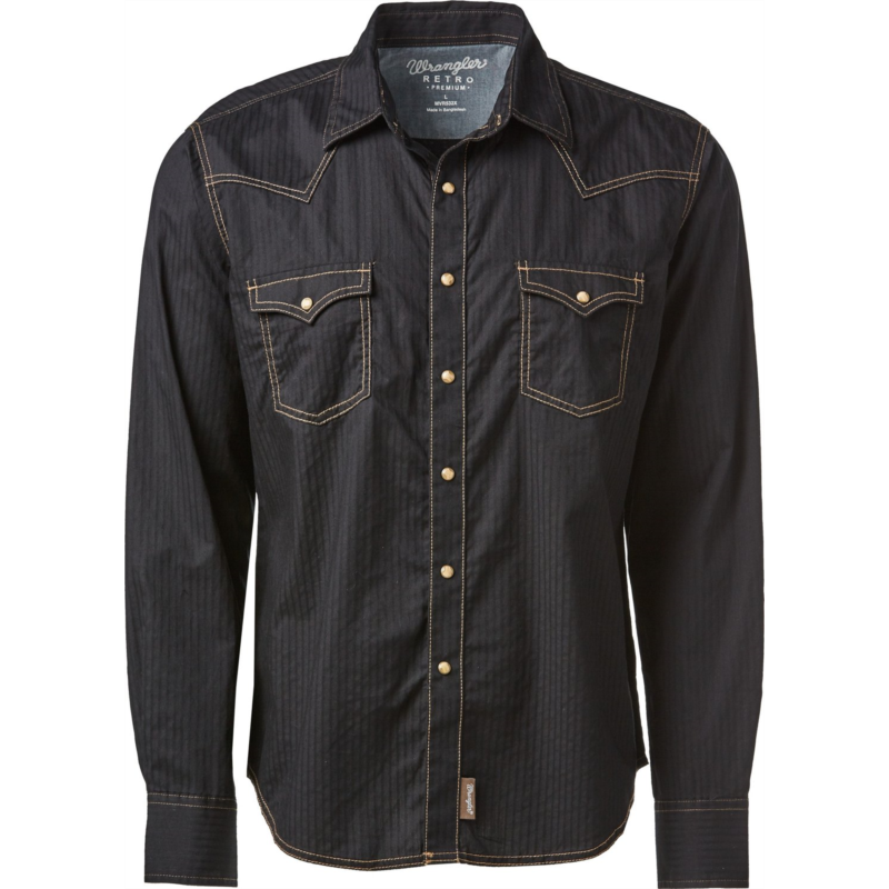 Enjoy the cool, casual style of the Wrangler Men''s Retro Premium Long Sleeve Snap Shirt. This shirt is designed with a snap-down front and snap cuffs to allow a great fit, and its 2 snap pockets let you carry keys and other small items with you. The shirt is made of 100% cotton to provide a comfortable feel. 100% cotton construction delivers all-day softness