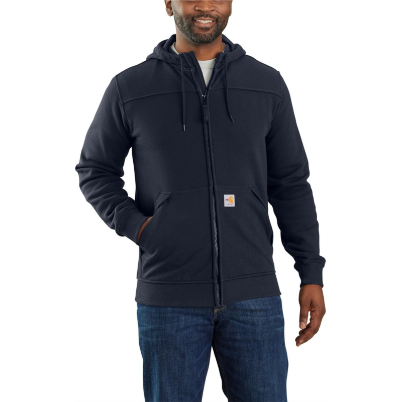 Feel ready to accomplish any demanding work task with the Carhartt Men''s Flame-Resistant Relaxed Fit Rain Defender Force Fleece Jacket. The 46% lyocell, 37% modacrylic, 14% aramid and 3% elastane spandex fleece construction offers a long-lasting and stretchy feel, and the Rain Defender technology helps keep you dry. The abrasion-resistant design on shoulders, hood, pockets waist and cuffs provide dependability and protection, and the attached hood with FR drawstring delivers a custom fit. 46% lyocell, 37% modacrylic, 14% aramid and 3% elastane spandex fleece material provides durability and flexibility