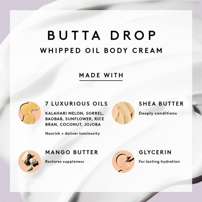 What it is: A thick, rich, body moisturizer that delivers deep hydration in a nourishing whipped oil cream loaded with rich butters and tropical oils.